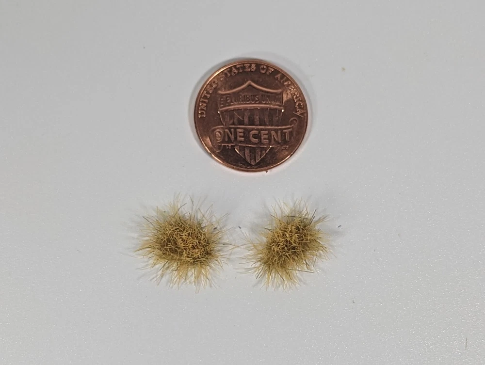 Self adhesive static grass tuft box for miniature scenery or basing in Savanna green 6mm. Color has been slightly adjusted with our new production process. There are more yellow-brown fibers in the mix, on a green base of shorter fibers making for an interesting effect. Pictures reflect the update. Easy to remove from sticker and flexible to apply to cracks and uneven spots. Box contains approx. 120 tufts with various shapes and sizes to mix and match for a more natural look. Grass made from a combination of lengths with highest being 6mm for a more 'full' or fluffy look. Terrain and base in pictures for display purpose only. If you have questions please message us for more info. Please feel free to mix and match Tufts from all our other auctions for a rebate up to 25%. Thanks for taking a look!:D *We pack and ship all our orders daily, @ 11:30AM Eastern time Monday-Friday . Sunday is gaming day so we too get to enjoy the Hobby! *Please note that our products are for ages 13+ and are not meant for consumption. *Due to the nature of some displays the actual colors may slightly vary from the pictures above. We put effort to make them appear as close as possible under regular tabletop lighting conditions indoors.