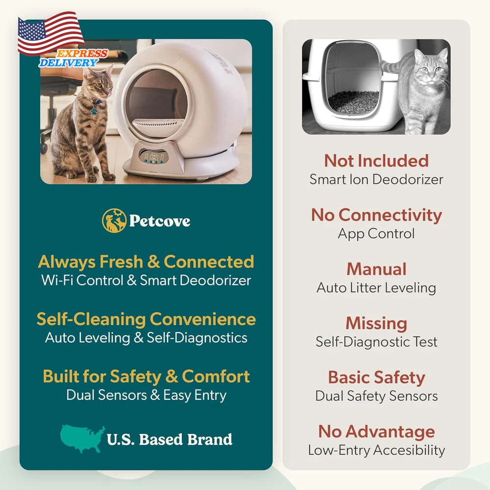 Store New Arrivals Add to Favorite View Feedback Contact Self Cleaning Automatic Litter Box for Multi Cat XL Capacity Quiet Operation Description Item model number PC-PRRTK-GRY Age Range Description All Life Stages Warranty Description LIFETIME WARRANTY Number of Items 1 Item Dimensions LxWxH 20.08 x 18.9 x 19.72 inches Color White 3 Product Dimensions 20.08"L x 18.9"W x 19.72"H Material Plastic Style Modern Item Weight 16 Pounds With Lid Yes Target Audience Keyword Cats, house-cats Model Name PurrTek Directions Read Instructions Manual before use Included Components 25 LitterWrap Liners, Base unit with litter drum, Insert Cards, Power adapter and cord, User manual Size Large Specific Uses for Product Indoor Item Package Dimensions L x W x H 23 x 23 x 22 inches 【Self Cleaning Litter Box】 Say goodbye to daily scooping. PurrTek auto litter box sifts into a sealed bag after every visit. Just tie and toss for a box that stays clean, fresh, and ready—24/7 convenience for you and comfort for your cat 【Triple Odor Control Self Cleaning Cat Litter Box】 Stop litter odors before they spread. PurrTek combines a sealed bin, deodorizing fan, and negative-ion system to neutralize smells instantly—keeping your home fresh, even with multiple cats 【Smart App Connectivity】Take the guesswork out of litter care. Connect via 2.4/5 GHz Wi-Fi or Bluetooth and control PurrTek through the Petcove app—schedule cleanings, adjust settings, monitor cat visits and get alerts when the bin is full 【Designed for Comfort】 Spacious, open drum with smooth low-RPM rotation lets cats turn, dig, and exit naturally. Built for cats up to 18 lb; Auto-cleaning pauses for kittens under 3 lb or pregnant/nursing cats, ensuring gentle, worry-free use 【Built for Busy Homes】 One litter box handles it all. The large sealed bin stores up to 15 days of waste for one cat or 5 days for three—so you enjoy hands-free convenience, fewer cleanups, and more time for what matters 【Quick Cleaning, Easy Care】 The filter and litter cylinder remove in seconds for wiping or washing with mild soap. The electronics stay dry, so cleanup is quick and the unit stays fresh 【Advanced Safety Features】 Anti-Pinch safety sensors stop the drum instantly if your cat approaches. Four weight sensors and an infrared sensor add layers of protection, while the child-lock and safe-entry mode keep both pets and kids safe during use 【Litter Compatibility】PurrTek self cleaning litter box for multiple cats works best for smooth sifting with clumping bentonite or mixed tofu/clay. Avoid crystal, pine, non‑clumping, dusty or oversized pellets that may clog or stick in the filter 【Space-Saving Dimensions】 Compact 20.28″ × 19.29″ × 20.08″ cat litter box automatic cleaning design with a stable, sensor-based base that prevents tipping. Fits neatly into any corner or room, blending seamlessly into your home 【Trusted Quality & Support】Backed by Petcove, a US-based company. We stand behind PurrTek electric cat litter box self cleaning with lifetime coverage and dedicated customer support——delivering confidence, care, and lasting value with every purchase. Product description ABOUT US We offer the best prices around on high quality products. Our E-store includes media such as books, movies, music and games while offering electronics, toys, sporting apparel, clothing, tools, general home, garden items and more. SHIPPING We are always working hard to ensure your package arrives as soon as possible. Please understand that some factors like weather, high postal traffic, and the performance of shipping companies are outside of our control. We offer free shipping to the lower 48 states and ship within 2 business days of payment, usually sooner. We do not accept P.O. Boxes. Please provide a physical address. For shipping outside of the continental USA, we only use eBay's Global Shipping Program.The item is shipped to KY and then sent to the rest of the world. International customers are responsible for all duties and taxes. Continue to check out in order to calculate costs for shipping the item to your country. Messages regarding eBay's Global Shipping Program MUST be directed at eBay EXCLUSIVELY. RETURNS We offer a 30-Day Return Policy on items which you are not completely satisfied with. You have the option for a full-refund or an exchange of the item. No returns are available on items shipped outside of the USA. PAYMENT We accept PayPal. CONTACT US This page content is yet to come Please ad us to your favorite seller and visit again later Thank You CUSTOMER SATISFACTION We try our very best to make sure every customer is completely satisfied. If there's a problem, message us! We're happy to help. WE ACCEPT Copyright © 2021 AutoDS. | All Rights Reserved