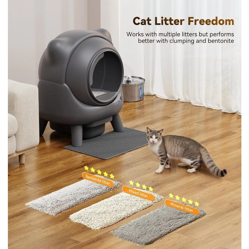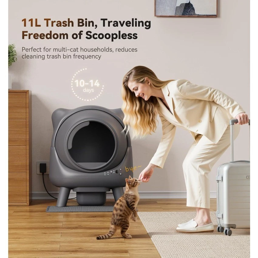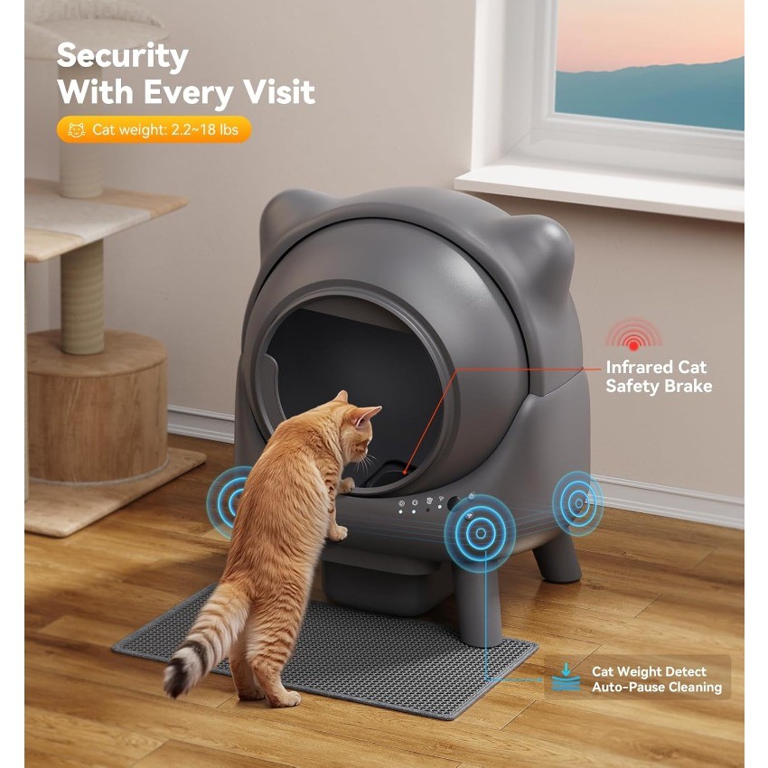 Self Cleaning Litter Box, Automatic Litter Box, FEELNEEDY Odor Control Robot, Cat Ears Design, 65L APP Real-Time Monitor, Cat Litter-Boxs for Multiple Cats, Safety Sensors, with 1 Trash Bag About this item Self-Cleaning & Zero Scooping: Say goodbye to daily scooping! Our self-cleaning litter box activates within 2 minutes after your cat exits, separates waste, and deposits it into a trash bin. Compatible with clumping litter, silica crystal litter, and tofu litter. Enjoy a fresh home and zero scooping even with 15 days of extended use since ample 11L trash bin Advanced No Smell System: Our self cleaning litter box adopts a triple-layer defense system to keep your home consistently fresh. First, the integrated ABS material prevents urine leaks and traps odors at the source. At the same time, the 3-layer waterproof cat litter mat (non-stick design) outperforms standard silicone mats by resisting waste buildup and odor absorption. Finally, the airtight waste storage (with silicone gasket) ensures smells stay sealed in—0 escapes. Enjoy real odor-free living Multi-Layer Safety Protection: Engineered for modern pet parents. We have designed an infrared sensor at the trash bin port. If your cat probes into the trash bin port out of curiosity during the cleaning cycle, the ball cabin will immediately stop rotating and return to the maximum opening state to prevent the cat from being trapped. If your cat enters the litter box, it instantly pauses cleaning because it senses the weight Real-Time Tracking with APP Control: This self cleaning litter box lets you track your cat's bathroom habits and litter use through the app. One-click cleaning can be performed through the APP. The built-in health monitor watches how often and when your cats go. This cat litter box supports 2.4G WiFi. When the trash can is full, the APP will remind you to change the trash bag in time Hassle-Free Setup & Easy Refill Litter: Pre-assembled design – Unbox, plug in, and pour litter (no tools required). To pour out the used cat litter, you need to tilt the litter box forward and pour the litter into the trash bin. Saves 80% of setup time. Lift the cat ears, the top-fill system lets you refill new litter via the wide opening 1---Please feel free to contact us through eBay Message ifrou have question,such as tracking number,shipping statusct.. 2---Please DON'T GIVE NEGARTIVE or NEUTRAL REVIEW or OPEN ANY CASES before contact us through ebay inbox. 3---Sometimes we may send small gift for you,please keep it if you get some gift from us.And hope you like it. 4---To offer best service,sometimes we will update the status of your order,please check your ebay inbox time by time. Anyway,thanks so much,enjoy shopping.
