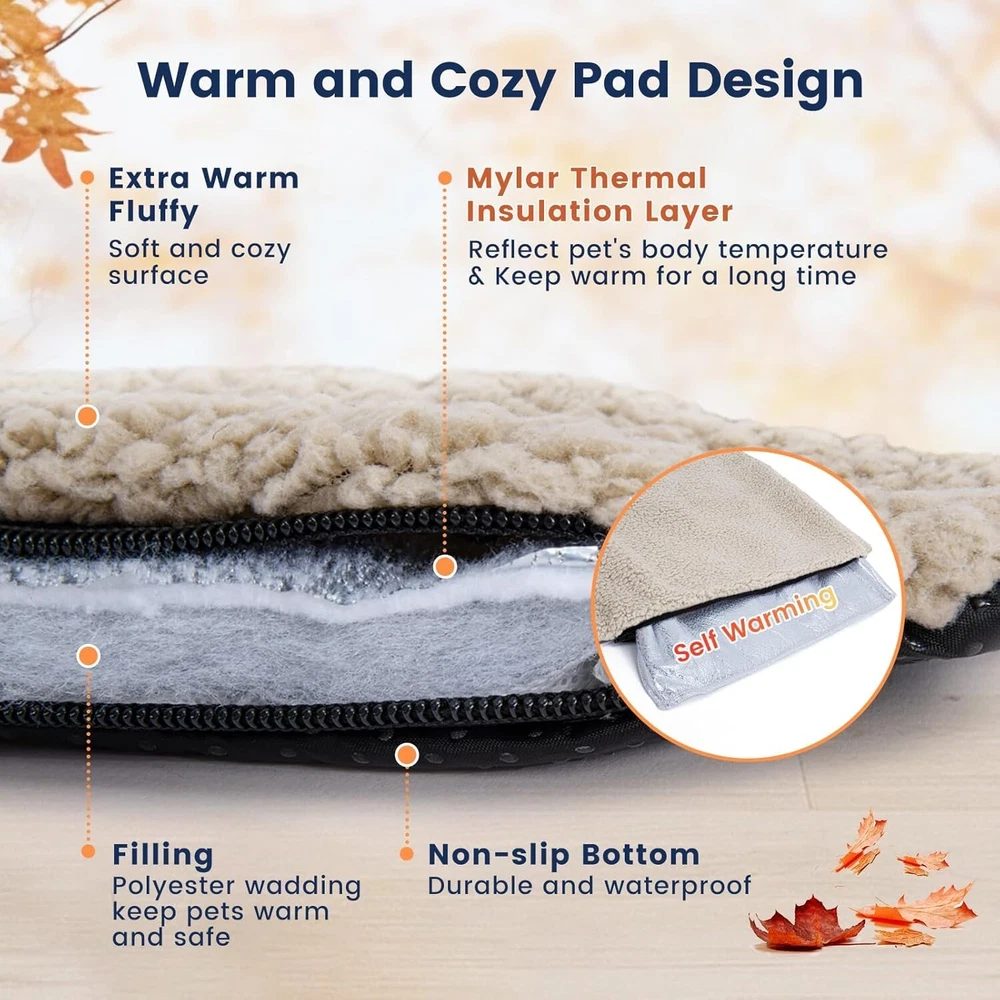 Created with Eselt - eBay Listing Designs Send us a message Created with Eselt - eBay Listing Designs Our Store Seller Profile Feedback About us Contact Created with Eselt - eBay Listing Designs Self Heating Dog Mat, 36 X 24 Inch Self Warming Dog Bed for Indoor Outdoor, Non About this item MULTIPLE SIZES: We offer five size options - 24*18*1, 30*20*1, 36*24*1, 42*28*1, and 48*28*1. Suitable for pets weighing from 30 to 110 pounds. There is a perfect fit for every furry friend, whether it's a small kitten or a large puppy. SELF HEATING: No electricity needed! Our self heating dog bed works by absorbing and reflecting your pet's body heat, creating a warm and cozy haven. This natural heating process keeps your furry companion snug and comfortable even on the coldest days. DESIGNED FOR DURABILITY: Made with high-quality & comfortable sherpa material and equipped with a non-slip bottom. Built to last, our pet warming mat can endure the wear and tear of daily use. Non-slip for safety for your furry friend. MULTI USE & PORTABLE: Comes with a removable washable cover for effortless cleaning. The lightweight design makes it easy to move around. Whether it can be uesd as a pet crate heating pad, kennel warming mat in the room, or even outdoors on a sunny day. AFTER SALES SERVICE: If not satisfied with the self heated pet pad, contact us. We'll solve issues. Shake and pat after receiving from sealed package. Cover is machine washable. Wash cover before use for comfort. Committed to your satisfaction. Created with Eselt - eBay Listing Designs Created with Eselt - eBay Listing Designs
