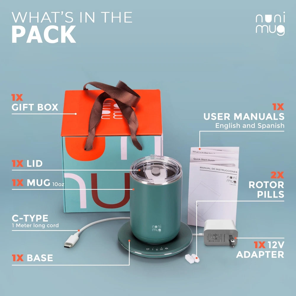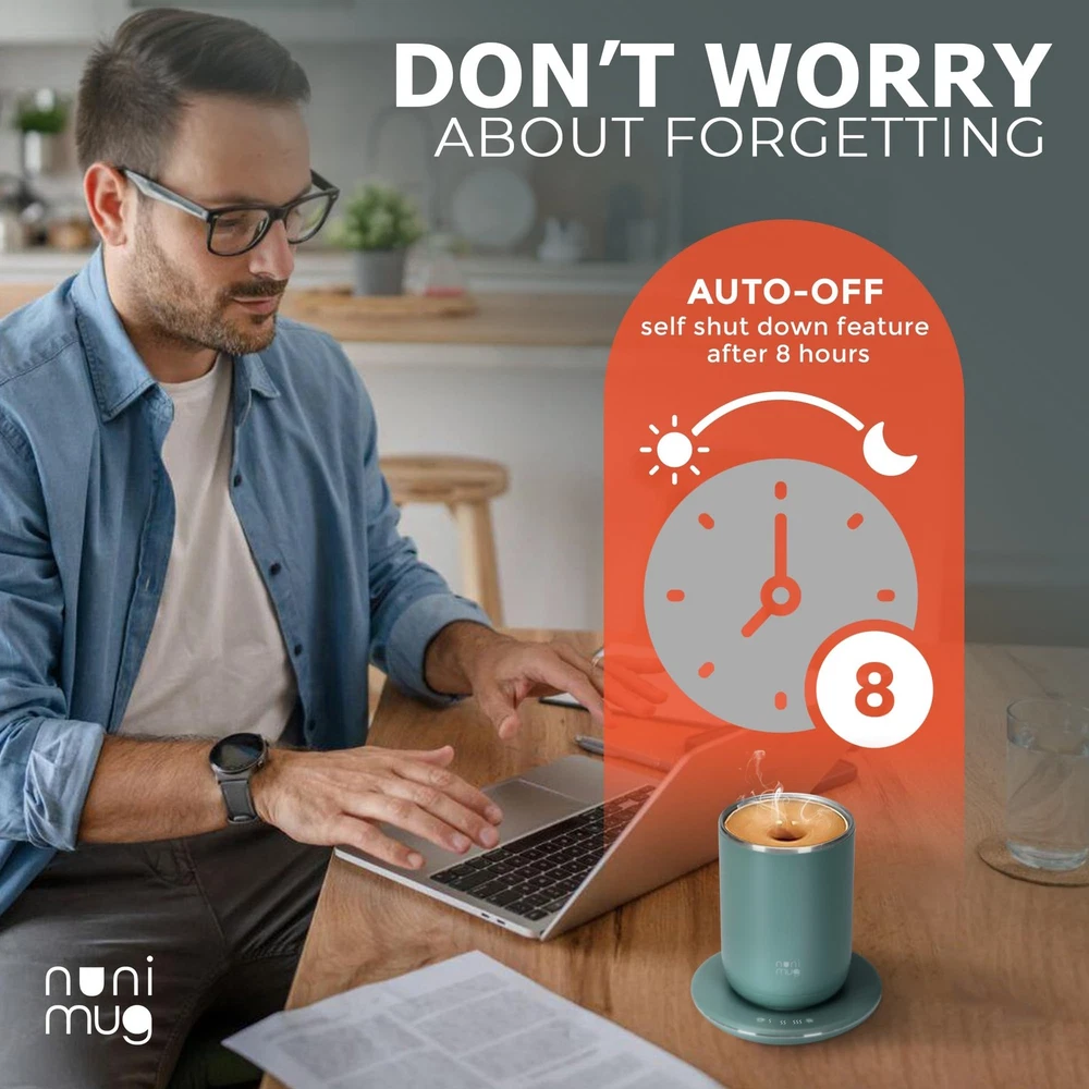 Self Warming Coffee Mug - ultimate solution for coffee enthusiasts and busy bees alike! Imagine waking up to the delightful aroma of freshly brewed coffee, ready to be savored without any effort. With two functions seamlessly integrated into one sleek design, this smart coffee mug not only stirs your beverage to perfection but also keeps it at your desired temperature for hours on end! Equipped with a smart coaster base, our heated coffee cup keeps your coffee hot for up to 8 hours, ensuring every sip is as delightful as the first. Worried about safety? Don't be. The coaster automatically shuts off after 8 hours, giving you peace of mind! But we didn't stop there. Differentiated by its advanced airtight lid, you can sip your coffee without worrying about spills or leaks. Plus, we've included an extra spare stirring pill, ensuring your temperature control smart mug remains in top-notch condition for years to come! Treat your friends and family to the gift of convenience and luxury with our self warming mug. Packaged in an elegant gift box, it's the perfect present for any occasion, making every sip a delight! WHY CHOOSE OUR TEMPERATURE CONTROL MUGS? Superior quality Features finest materials Advanced self-heating technology A removable magnetic stirring pill Simple Operation Features an advanced airtight lid Comes with a 12V charger Includes an extra spare stirring pill Elegant packaging Makes a wonderful gift for loved ones Guaranteed Satisfaction PACKAGE INCLUDES 1 X Hot Coffee Mug 1 X Coaster Base 2 X Stirring Pills 1 X Airtight Lid 1 X 12V Charger So why wait? ADD this coffee warmer mug to your basket and discover the perfect blend of convenience and luxury! Keep Your Beverages Hot - Say goodbye to lukewarm drinks with our heated coffee mug, which features a smart coaster base that keeps your coffee hot for up to 8 hours. Featuring 3 heating levels (Warm, Hot and Piping). No more rushing to finish your beverage before it cools down—savor every sip at the perfect temperature! Effortless Stirring - Equipped with a removable magnetic stirring pill, our electric coffee mug effortlessly blends your beverage without the need for manual stirring or activation buttons. Simply place the self heating mug on the coaster, and watch as it effortlessly swirls your drink, ensuring consistent flavor every time! Easy to Use, Easy to Enjoy - No complicated instructions here. Just place the temperature controlled mug on the smart coaster base, plug in the included 12V wall charger, and press the button to activate the stirring and heating functions. It's that simple! Note: The coaster has to be plugged in at all times. The Cup heating functionality only works while it is on the base. Uninterrupted Convenience - Featuring an advanced airtight lid, you can confidently take your beverage on the go without worrying about spills or leaks. Plus, we include an extra spare stirring pill with our warming mug for coffee, ensuring you always have a backup for uninterrupted stirring enjoyment! Superior Quality - Crafted from food-grade BPA-free stainless steel and ABS material, our electric mug warmer is safe, smooth, sturdy, and durable enough to last for years to come. Plus, its sleek design adds a touch of elegance to any setting!
