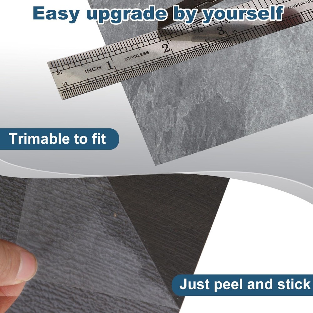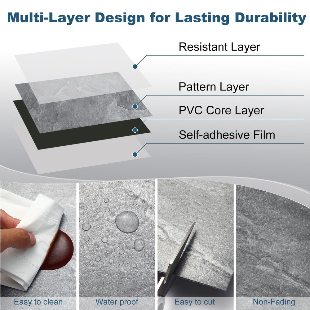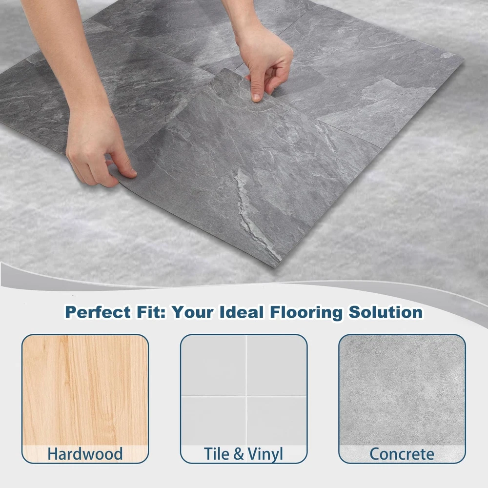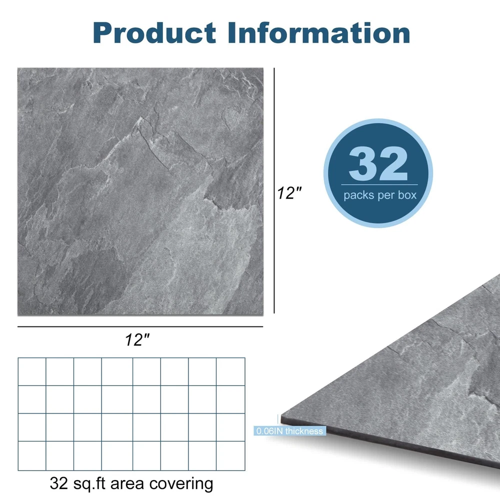 Transform your living space effortlessly with Peel and Stick Vinyl Flooring , a premium choice for anyone looking for a blend of durability, style, and ease of use. Each vinyl plank is intricately designed with a lifelike wood grain texture and high-definition printing to mimic the natural beauty and feel of real wood. With its revolutionary easy-to-install peel-and-stick system, this flooring is perfect for quick home renovations and do-it-yourself projects, requiring no professional tools or experience. Each square tile, measuring 12x12 inches, features an enhanced 1.5mm core that securely adheres to the surface, ensuring a stable, bubble-free, and curl-free installation. The uniform size helps in achieving a consistent and natural appearance, making the alignment of textures seamless across your floor. 's vinyl flooring is not only simple to lay down but also designed to endure. It is waterproof, scratch-resistant, and easy to maintain , making it an ideal selection for high-traffic areas in homes with pets and children. The material used is safe and eco-friendly, ensuring a healthy living environment for your family. Opt for Vinyl Flooring and enjoy the peace of mind that comes with dedicated customer support and a 2-year warranty against any manufacturing defects. Invest in this flooring solution to bring both elegance and functionality to your home or office, enhancing its aesthetic appeal while ensuring long-term durability. 🌲Wide Application: Designed for a variety of spaces, these peel and stick floor tiles are the ideal solution for upgrading bedrooms, bathrooms, kitchens, and even rental properties. Transform any room effortlessly with a modern, stylish finish. 🌲Premium Design: With a 1.5mm thickness, these tiles feature high-definition patterns and a lifelike 3D texture. Achieve the sophisticated look of real flooring without the cost or complexity. Perfect for creating a natural and inviting atmosphere in your home. 🌲Effortless Installation: Say goodbye to messy glue and complicated tools. These tiles are peel-and-stick for a quick and hassle-free installation. They’re easy to cut, allowing you to customize them to fit corners, edges, or uniquely shaped spaces. 🌲Ample Coverage: Each pack includes 32 tiles, each measuring 12" x 12", providing a total coverage of 32 square feet. This ensures you have enough material for your DIY project, whether it’s a small room makeover or a larger renovation. 🌲Satisfaction Commitment: We’re dedicated to ensuring your experience with our product is seamless and enjoyable. If you encounter any issues, our responsive support team is here to provide timely and effective assistance to meet your needs.