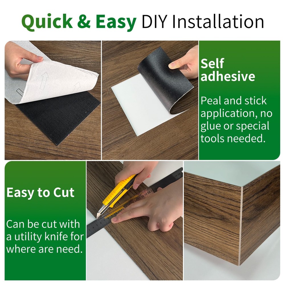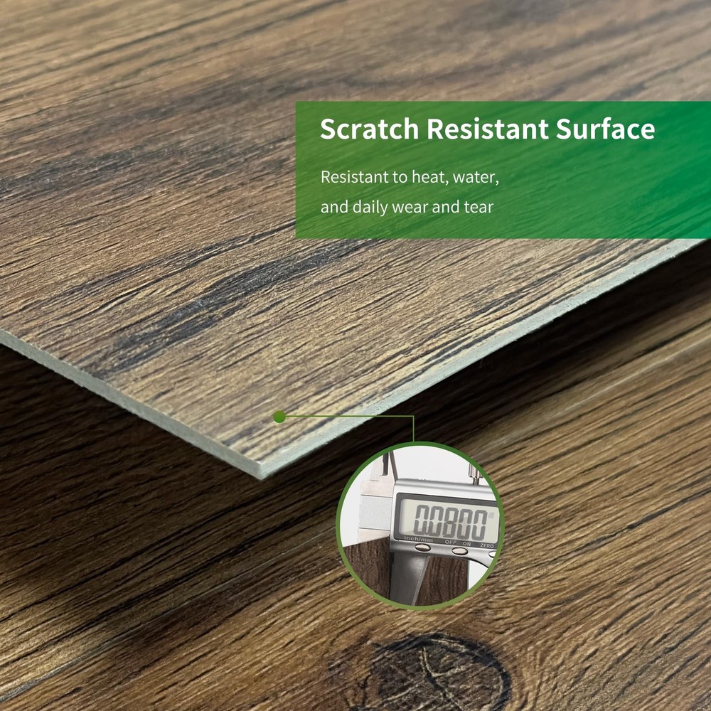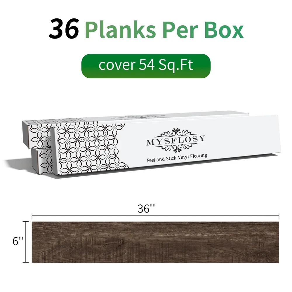 Dimensions: Each plank measures 6 inches x 36 inches and 2.0mm thick. Split Chestnut Authentic Wood Grain: vinyl plank flooring designed with high-definition printing and embossing techniques, creating realistic wood grain patterns and textures; Experience the beauty of real wood flooring without high cost and maintenance Enhanced Durability: This luxury vinyl flooring features a stable structure and a wear-resistant coating, ensuring it withstands the test of time; Suitable for any room in your home, from living area to kitchen and bathroom Dimensions: Each plank measures 6'' x 36'' and 2.0 mm / 0.08'' thick; 36 planks per box providing a coverage of 54 Sq.Ft / 5 ㎡; The precise thickness guarantees a durable and reliable flooring solution Easy DIY: No need for additional adhesives or complicated tools; Peel-and-stick installation, saving you time, effort; Effortlessly transform your living and working space Strong Features: The plank is resistant to scratches, stains and heat, 100% waterproof, anti-fade; Not only visually appealing but also highly functional