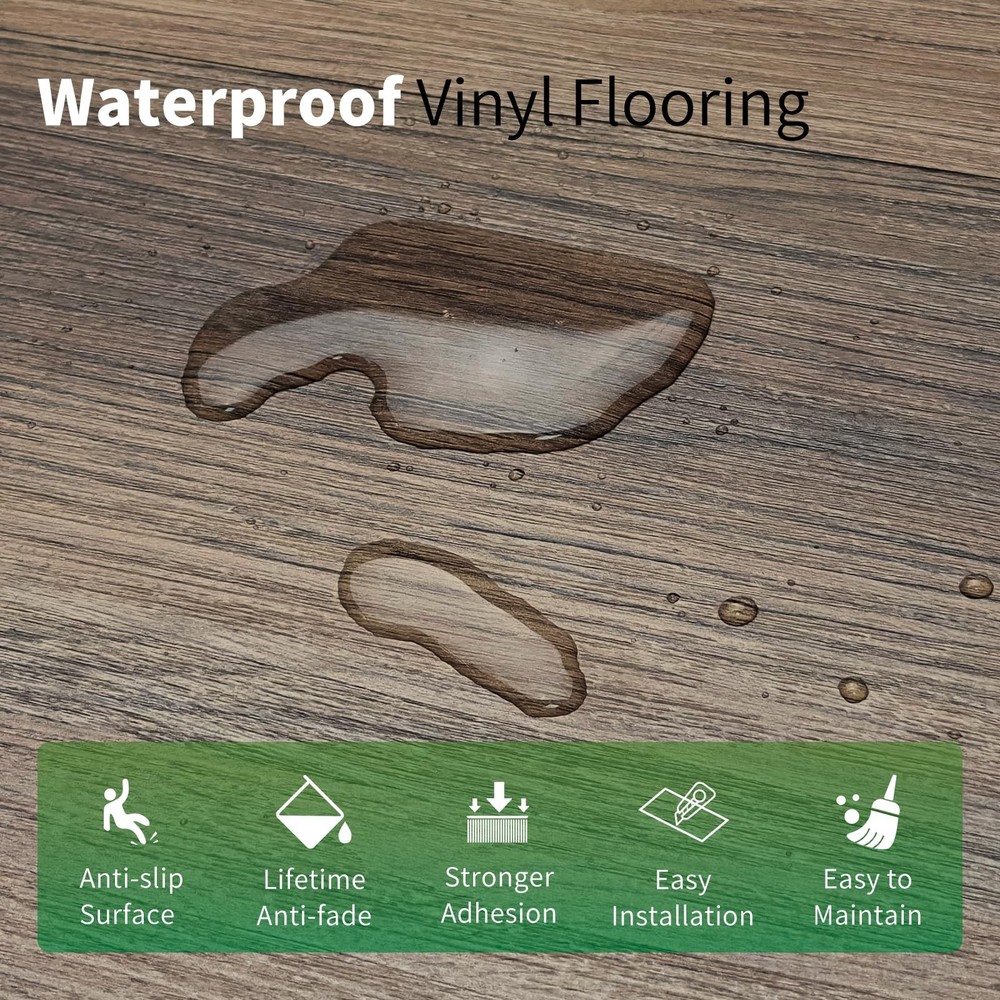 ATOPOSE Wood Grain Vinyl Flooring - Waterproof Peel & Stick Tiles 36-Pack