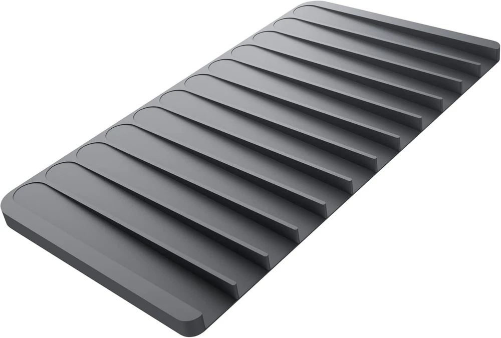 Store New Arrivals Add to Favorite View Feedback Contact Self-Draining Silicone Dish Drying Mat or Trivet for Kitchen Counter in Dark Grey, KDM-10DG Description Item model number KDM-10DG Style Drying Mat Pattern Solid Country of Origin China Warranty Description 1 year limited warranty. Unit Count 1.0 Count Batteries Required? No Finish Dark Grey Product Dimensions 8.13"L x 14.75"W Material Silicone Item Package Quantity 1 Item Weight 12.16 ounces Special Features Flexible,Waterproof Part Number KDM-10DG Mounting Type Kitchen Counter,Sink,Countertop,Surface Color Dark Gray Shape Rectangular Included Components Drying Mat Product Care Instructions Hand Wash Only Size 8.1" x 14.8" SILICONE DRYING MAT with soft surface for drying pots, dishes, glassware, and utensils keeps your countertops clean and dry – DIMENSIONS: 14 3/4 in. L x 8 1/8 in. W x 1/2 in. H – MULTI-FUNCTIONAL: Use as a TRIVET for hot pots and pans straight out of the oven – Use in the BATHROOM for cosmetics or styling tools to protect vanity countertops SELF-DRAINING DESIGN: Sloped drainage grooves channel water into the sink, protecting your countertop from water damage – FASTER DRYING: Raised silicone ridges increase air circulation so that wet items dry faster 100% FOOD-GRADE SILICONE is great for drying produce – NON-SLIP DESIGN keeps the mat from sliding around and items from slipping out of place – DURABLE CONSTRUCTION: High-quality silicone easily stands up to everyday use, flexible enough to bend and twist without breaking HEAT SAFE UP TO 400F: Perfect for use as a trivet or coaster, or as a cooling rack for baked goods – DISHWASHER-SAFE: Waterproof construction allows you to wipe away spills or throw the mat into the dishwasher for easy cleaning – STAIN-RESISTANT color-stable material will not fade over time – PAIRS WITH a matching Kraus ROLL-UP DISH DRYING RACK (KRM-10 and KRM-11) for enhanced functionality in your kitchen COMPACT DESIGN perfect for small kitchens or prep areas with less counter space, fits in any drawer or cabinet for convenient storage – MULTIPLE COLORS compliment your kitchen or bathroom sink – 1 YEAR LIMITED WARRANTY with top-rated customer service available to support your needs Protect your kitchen counters while drying your dishes with the KRAUS Self-Draining Silicone Dish Drying Mat. The smart design incorporates sloped drainage grooves that channel water directly into the sink, protecting your kitchen counters from water damage. Raised silicone ridges increase air circulation, allowing wet items to dry more quickly. Made with durable BPA-free silicone, this 100 percent food-safe mat is flexible enough to bend without breaking and easily stands up to everyday use. A non-slip design keeps it from sliding on the counter and prevents items from slipping, with an optimized angle engineered to prevent fragile stemware from tipping over. Heat-resistant up to 400 degrees Fahrenheit for use as a trivet or coaster to protect your countertops from hot items, or as a cooling rack for baked goods straight out of the oven. Use this multi-functional accessory in the kitchen to air-dry pots, pans, and cutlery, or in the bathroom to protect your vanity countertops from cosmetics and hot hair styling tools. Waterproof construction allows you to simply wipe spills from the mat’s surface, or throw it into the dishwasher for easy cleaning. The color-stable stain-resistant material will not fade over time, with multiple color options available to complement your kitchen or bathroom sink. Perfect for smaller kitchens or prep areas with limited counter space, the compact design fits into any drawer or cabinet for convenient storage. ABOUT US We offer the best prices around on high quality products. Our E-store includes media such as books, movies, music and games while offering electronics, toys, sporting apparel, clothing, tools, general home, garden items and more. SHIPPING We are always working hard to ensure your package arrives as soon as possible. Please understand that some factors like weather, high postal traffic, and the performance of shipping companies are outside of our control. We offer free shipping to the lower 48 states and ship within 2 business days of payment, usually sooner. We do not accept P.O. Boxes. Please provide a physical address. For shipping outside of the continental USA, we only use eBay's Global Shipping Program.The item is shipped to KY and then sent to the rest of the world. International customers are responsible for all duties and taxes. Continue to check out in order to calculate costs for shipping the item to your country. Messages regarding eBay's Global Shipping Program MUST be directed at eBay EXCLUSIVELY. RETURNS We offer a 30-Day Return Policy on items which you are not completely satisfied with. You have the option for a full-refund or an exchange of the item. No returns are available on items shipped outside of the USA. PAYMENT We accept PayPal. CONTACT US This page content is yet to come Please ad us to your favorite seller and visit again later Thank You CUSTOMER SATISFACTION We try our very best to make sure every customer is completely satisfied. If there's a problem, message us! We're happy to help. WE ACCEPT Copyright © 2021 AutoDS. | All Rights Reserved