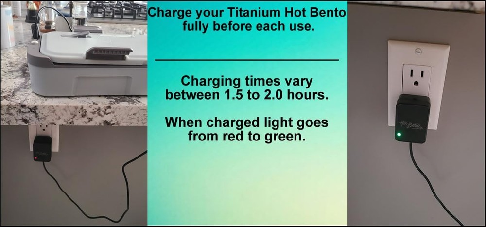 Enjoy the Warmth of a Home-Cooked Meal Anywhere. Take to work, outdoor recreation or travel and enjoy a delicious, heated meal on-the-go. applies recent developments in battery technology to improve the efficiency and speed of meal prep. Our proprietary lithium battery pack is rechargeable, safe and offers unparalleled on-demand convenience. Charge after each use (light on wall charger turns from red to green when fully charged). Do not immerse in water or liquids (not water proof). Wipe nonstick surface with cloth or sponge not steel wool or scrubby. Lid can be washed normally. Comes with a Full Year Limited Waranty. PRESSURE RELIEF VALVE: Equalizes pressure caused by steam and altitude to prevent vacuum and ensure easy opening. ON-DEMAND CONVENIENCE: Simply Double Press the power button to heat your meal to 145-165 °F in 10-15 minutes, depending on its contents CORDLESS, BATTERY POWERED: The ideal meal prep system for your busy lifestyle. offers unparalleled portability. Take it to work, travel, outdoor recreation and more. Upgraded electronics for added protection and water resistance. HEALTHY EATING: Meal prep with healthy ingredients that suit your taste. ENVIRONMENTALLY FRIENDLY: Reusable so that you can reduce the consumption of single use plastic. Hand wash and recharge after each use to reuse over and over again.