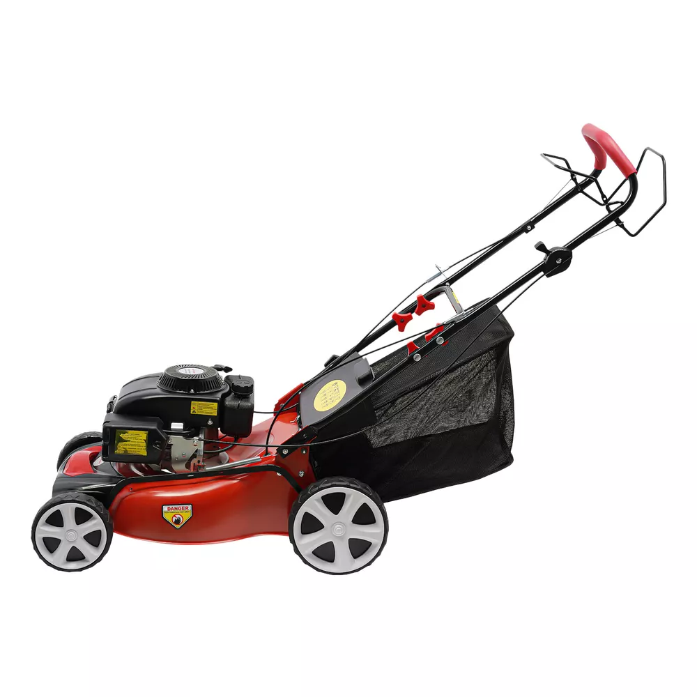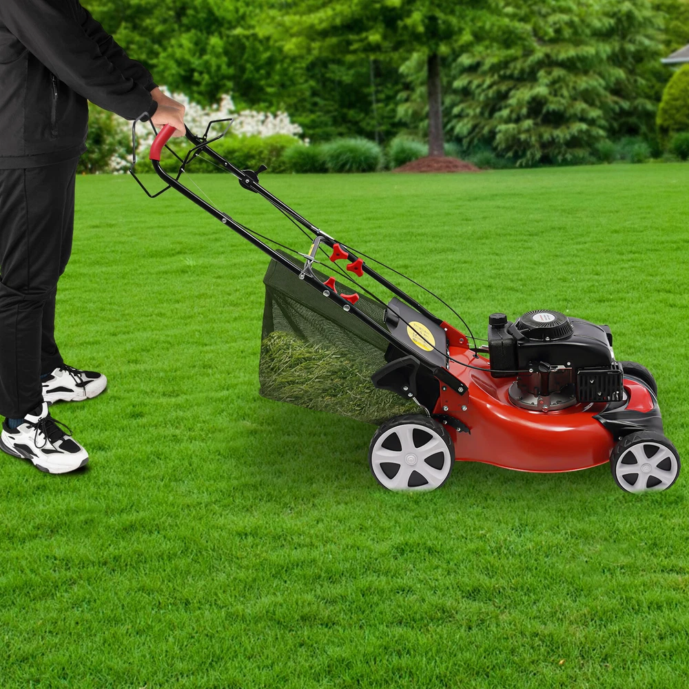 Self-Propelled Gas Powered Lawn Mower with Bagger with 4-Stroke Engine 20” 140cc Description The self-propelled gas lawn mower is not only a powerful assistant for garden maintenance, but also a finely crafted representation of the beauty of nature. This lawn mower is equipped with a high-performance 4-stroke engine, which brings new vitality to vast green spaces with its surging power. It is not only a tool, but also a free green paintbrush in the hands of gardening enthusiasts to outline vibrant landscapes. Key Features Outstanding Performance: Its premium 4-stroke engine can provide strong power (5HP), large displacement (140CC), and fast speed (2800rpm), which can help you quickly and efficiently complete mowing tasks. Clean Mowing: The manganese steel straight blade with a 20in mowing width undergoes quenching treatment, which is sturdy, sharp, and not afraid of gravel, ensuring that every mowing is clean and tidy. Thoughtful Design: It has 8 gears to adjust the mowing height (1-3.2in), making it easy to set the suitable height according to different grass species and growth conditions to ensure consistent aesthetics after lawn mowing. Continuous Work: Its 15.9gal large bag, 0.42gal gas tank and 0.2gal engine oil tank can collect more grass cuttings at once. Whether it is mowing large lawns or dense grass, it can easily handle without frequently emptying and refueling, making the mowing process more continuous. Easy to Install: The package includes all the necessary accessories and a detailed manual for installation, making installation simple. It can be put into use soon. Effortless Movement: The self-propelled mower does not require manual propulsion, making operation simple. Its reasonable height (42.1in) allows you to use it without bending over for a long time, reducing the burden on your waist and making it more comfortable to use. Modern Appearance: With plastic spraying, its surface is smoother and the color is more vivid. Its classic red and black combination not only meets your appearance needs, but also highlights your fashion and taste. Guaranteed Customer Service: Our friendly customer service team will be happy to help you with any questions you may have regarding this product. Details Soft Handle: The handle with a soft surface can effectively reduce hand pressure to maintain a comfortable grip. Practical Silencer: With a silencer, it has a noise level of about 70dB during operation, allowing you to enjoy a quieter experience while mowing. Stable Wheels: The four wheels are made of reinforced nylon, and the grooves on the wheels grip the ground more firmly, effectively preventing shock and ensuring a smoother mowing process. Application It is suitable for lawn mowing work in sports fields, community greening, municipal greening, urban gardens, villas, estates, and other places. Specification Material: Steel, Nylon, Manganese Steel Treatment: Quenching, Plastic Spraying Color: Red, Black Power Source: Gasoline Engine Type: 4-stroke, Single Cylinder, OHV Gasoline Engine Start Type: Pull Start Drive Type: Self-propelled Power: 5HP Speed: 2800rpm Displacement: 140CC Noise Level: About 70dB Gasoline Tank Capacity: 1.6L/0.42gal 4-stroke Engine Oil Tank Capacity: 0.6L/0.2gal Grass Catch Bag Capacity: 60L/15.9gal Mowing Height Adjustment: 8 Gears (25-80mm/1-3.2in) Mowing Width: 51cm/20in Wheel Size: 19.5cm/7.7in (Front); 24.5cm/9.7in (Rear) Unfolded Product Size: 54*158*107cm/21.3*62.2*42.1in Folded Product Size: 54*119.5*67cm/21.3*47.1*26.4in Package Size: 88.5*60*47.5cm/34.8*23.6*18.6in Net Weight: 32.65kg/72lbs Gross Weight: 36.85kg/81.2lbs Package Included 1* Self-propelled Gas Lawn Mower 1* English Manual All Accessories for Installation Notes Please read the manual carefully and pay attention to the safety precautions inside. Please allow the slight color difference caused by the shooting light and 1-3cm error due to manual measurement, and make sure you do not mind before ordering. Payment Delivery details Terms of sales About us Contact us Payment We accept ebay payment 。 Fees such as import duties, taxes are not included in the item price or shipping costs. These charges are the buyer's responsibility. Delivery details Shipping: 2-9 working days to: USA Terms of sales We maintain high standards of excellence and strive for hundred percent customer satisfaction. Feedback is very important to us. We hope that you contact us immediately before you give neutral or negative feedback, so that we can address your concerns. It is impossible to address issues if we do not know about them! About us Your satis faction is our ultimate goal. We work hard to earn your trust and future business. Our certified technicians have tested each item before shipping. The unit comes with 1 year limited warranty on all manufacturing defects. a) If you receive a defective item, you may return it or ask for a discount. Please contact us within 14 days after you receive the package. b) What you returned must be intact and in its original packaging as re? u. Customer is responsible for shipping costs of the returned item. c) We will cover the cost of shipping back t with the shipping rate indicated in the registration page. We will send you a new unit or refund the full payment you paid. Thank you. Contact us Business Hour Business Hour: Monday To Friday: 8:30 AM to 5:00 PM (Beijing China time) Due to time zones, our reply to your questions may not be immediately. But within above working time, we will reply your email within 24 hours. If it's non-workdays, please kindly be patient and wait till Monday. Please contact us with ebay message. Please feel free to contact us if you have any questions. Monday To Friday: 8:30 AM to 5:00 PM (Beijing China time) Due to time zones, our reply to your questions may not be immediately. But within above working time, we will reply your email within 24 hours. If it's non-workdays, please kindly be patient and wait till Monday. Please contact us with ebay m