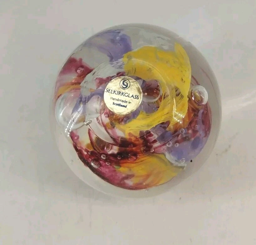 Original/Reproduction:OriginalMaterial:GlassType of Glass:Art GlassEra:Late 20th Century (1970-1999)Production Style:Art GlassTheme:swirlType:PaperweightBrand:SelkirkColor:MulticoloredOrigin:ScotlandFeatures:Stamped