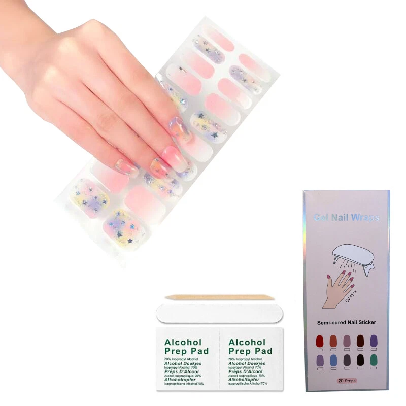 Up for sale are Amazon warehouse overstocked items. All items are brand new in sealed package but outside box might not be in perfect shape. Semi cured gel nail strips are new renovated nail wraps and are different from ordinary nail stickers. Semi-cured nail strips are made with real gel nails in a triple layer and are pre-cured 60%. Upon applying, you can enjoy a salon look gel nails and simply get it done at home. ❤️ Instruction: ❤️ How to apply: 1.Wash your hands and clean any oil or moisture on your nail with an alcohol prep pad. 2.Remove the clear film and pick the right size from the base sheet with tweezers. 3.Apply the stickers on the nail firmly cut off extra parts with nail clips or scissors, file off excess stickers gently. ❤️ Note: UV lamp is required when sealer is applied. ❤️ How to remove: Soak nails in warm water for 3-5 minutes and gently remove from the side corner of the cuticle area. ❤️ What does it include? - 20 Semi-cured nail strips in 10 different sizes - 1 mini nail file - 1 wood stick - 2 alcohol wipe 🚚 Shipping is free within 48 contiguous states. Fast shipping from California. 🎁 Free UV lamp included when you purchase 5 sets or more. 📧 Please message us if you have any questions. We will reply within 24 hours. ❗ All clearance sales are final, not return or exchange.