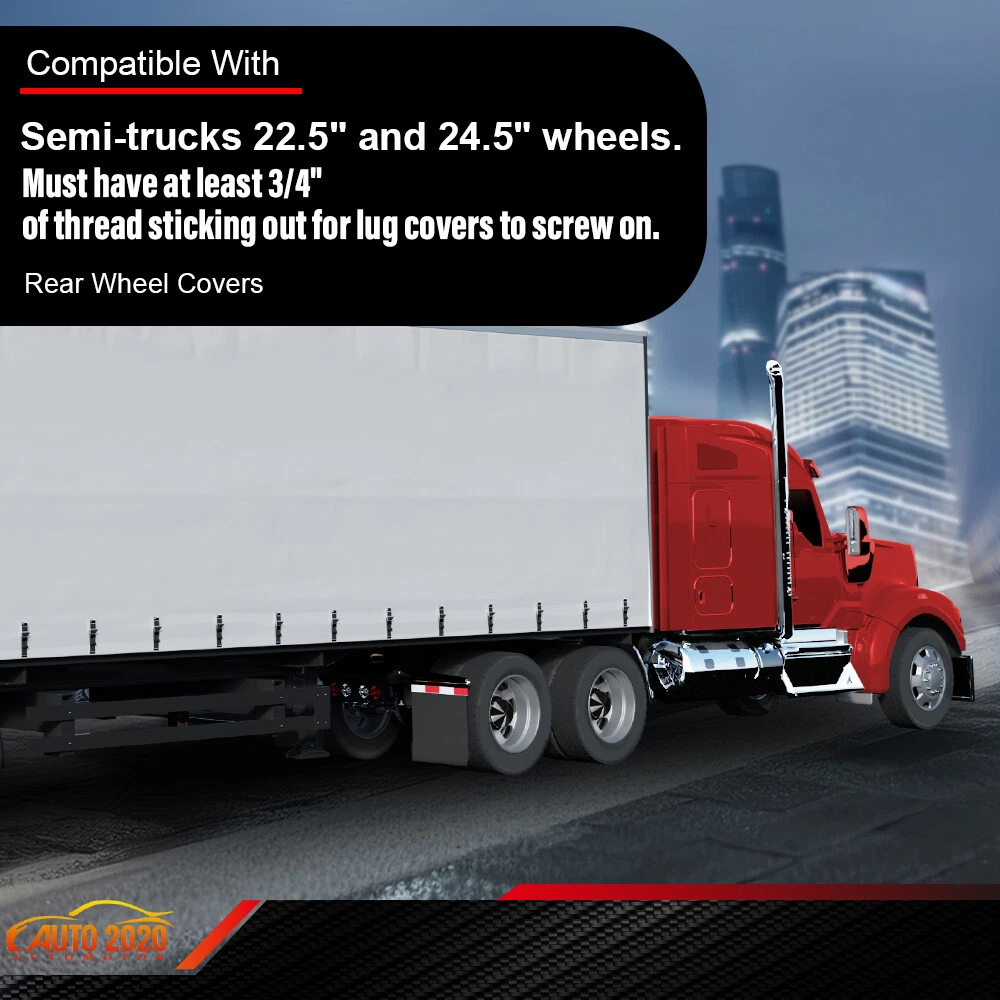 AUTOMOTO PRODUCT Fits Rear 33mm Nut Covers w/ Spiked Removable cap Semi Truck Hub Cover Wheel Set Product Introduction Title: Rear Wheel Covers Application: Fit For Semi-trucks 22.5" and 24.5" wheels Must have at least 3/4“of thread sticking out for lug covers to screw on Please confirm the item whether matches your vehicle in the compatibility table before purchase Description: 100% brand new and high quality Easy To Install and durable use. High Quality Materials and High Quality Product. Direct pricing by the factory, no price increase by the middleman. Limited life guarantee for workmanship and defects. No Installation Guide or Instruction Included. Color: Black, as the picture Warranty: 1 Year Quantity: 4 pc Material: ABS Plastic Package include: 4* Rear Wheel Covers ( If not shown in the photo, it is not included. ) Note: All of the items in our shop will come to you with the tracking number If any question, pls contact us on eBay freely, we'll reply you in 2 business day. Visit shop home WELCOME to our ebay shop CONTACT US We Open 7 Days A Week ABOUT US ABOUT US: Welcome to GPLUS's eBay Store. We specialize in aftermarket automotive car parts and is the #1 industry distributor for affordable and quality products. Welcome to GPLUS's eBay Store. We specialize in aftermarket automotive car parts and is the #1 industry distributor for affordable and quality products. Welcome to GPLUS's eBay Store. We specialize in aftermarket automotive car parts and is the #1 industry distributor for affordable and quality products. SHIPPING Shipping Information All items will ship within 24 hours (Monday - Friday). Payment cleared/received on Friday will be shipped on the next business days (Monday or Tuesday). We are not responsible for carrier transit time. This information is provided by the carrier and excludes weekends and holidays. Note that transit times may vary, particularly during peak periods or in climate weather conditions, and that delivery times frames will need to be extended for any processing time frames in excess of 1-2 business days. excess of 1-2 business days. International Shipping: International buyers are responsible for possible customs fees, brokerage fees or duty fees. We would appreciate for understanding of tracking number would not be updated in between the city of departing in the U.S. and the city of destination. ATTENTION Cargo transportation Double check shipping address. We are not responsible for incorrect or undeliverable addresses. Please use Shipping & Payments tab on top of page for shipping details for your location. Transaction will be held until a full shipping amount received. Shipping address Some of the packages cannot be delivered to a PO Box. Customer is responsible to ensure PO Box address given is deliverable by the shipping company. Package will be held until a valid physical address is provided. Customer assumes shipping charges incurred in shipping to undeliverable address. Customs duties International buyers are responsible for all customs duties, taxes, and other applicable fees incurred by the country's customs/border regulations. Please contact customs for more information. We are not responsible for any changes to address after item has been shipped. RETURN please notify us within 30 days after you've received your purchased item. Return Policy: Buyers pay for return shipping fee. Items to be returned must be in resalable condition.14 Days money back, please notify us within 14 days after you've received your purchased item. If your order has been received and it is not what you ordered, or if your item has a manufacturer defect, please contact us within 14 days from delivery date. And you must contact us to request an Return Merchandise Authorization Number (RMA). No return package will be accepted without a valid RMA number. All products are covered by our warranty against defects. EMAIL click here for questions All return requests must be submitted through your eBay account. Iterms and Condition For emissions related items, please check with your local jurisdiction for emission specific requirements before purchasing. All items do not come with installation instruction unless otherwise specified. If item is questionable, please consult your local professional/mechanic before making purchase.