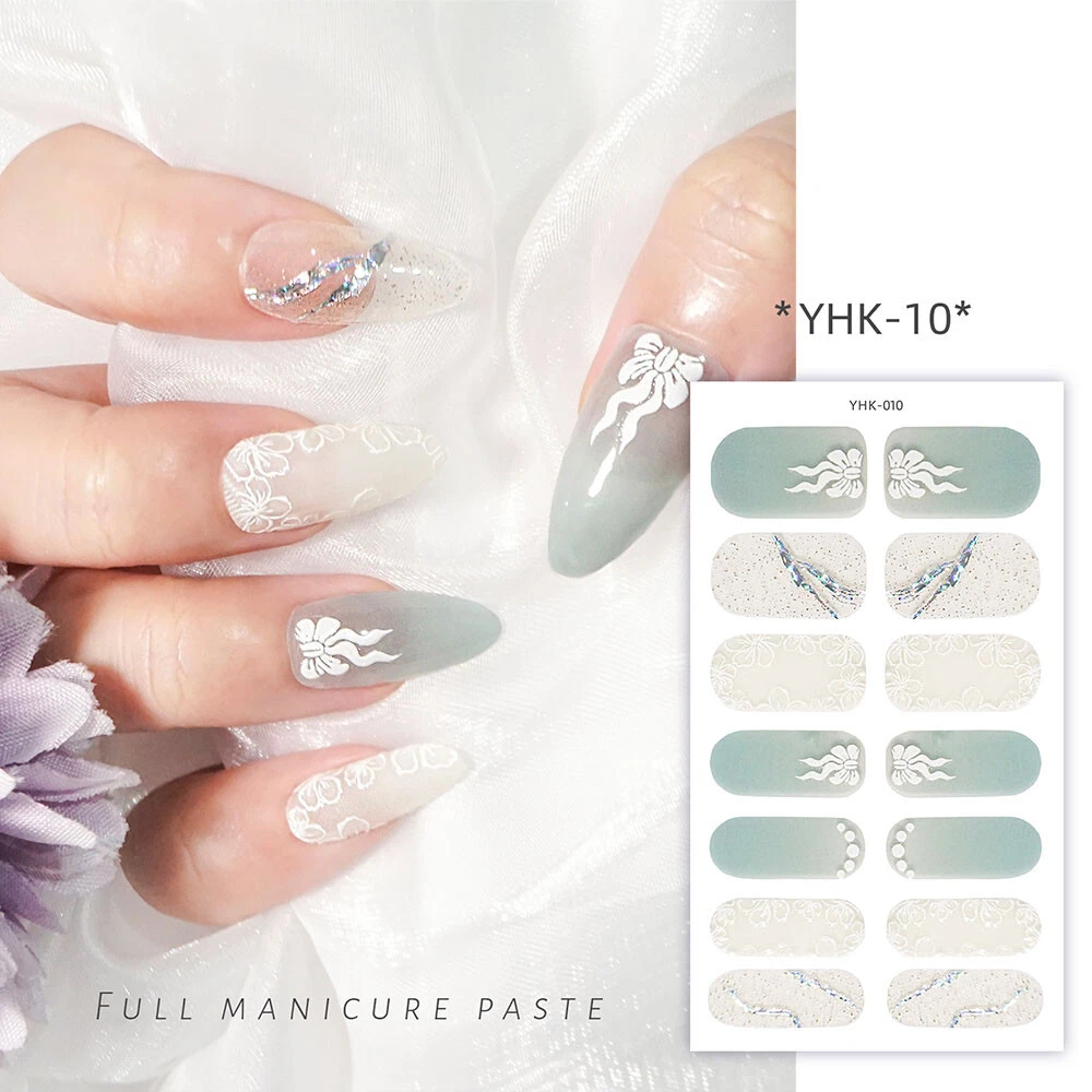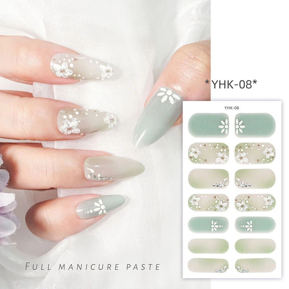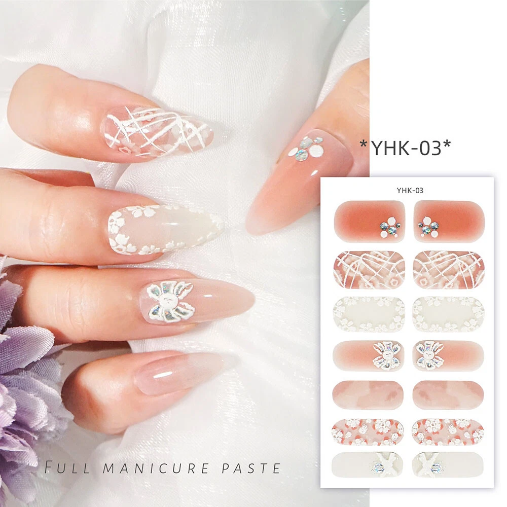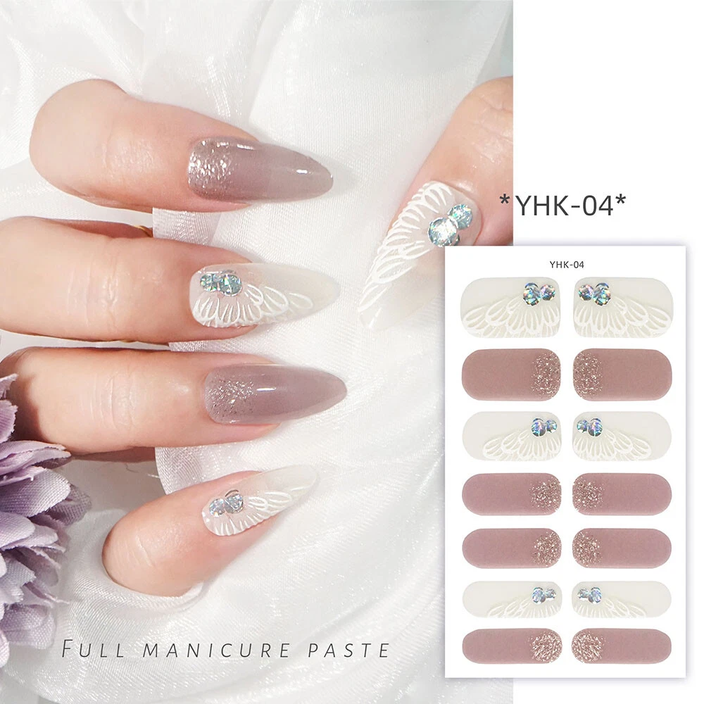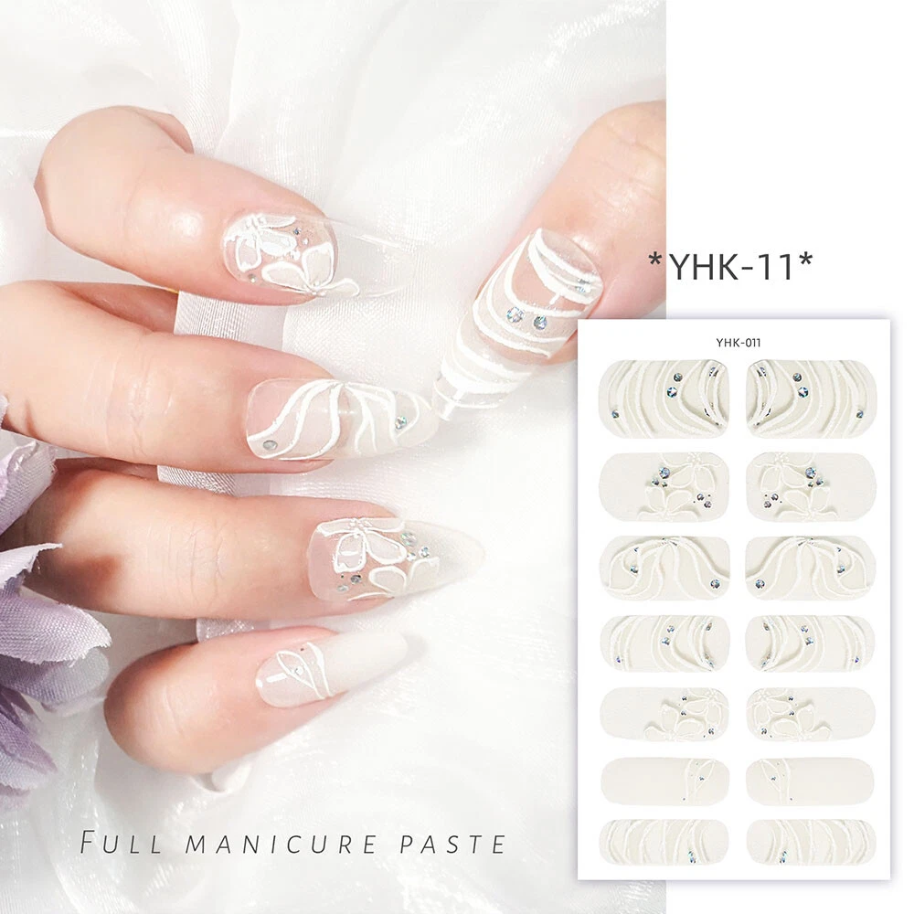 100% New arrival 3D nail wraps Nail stickers with rhinestones Fashion 3D Pattern designs Colors: As the picture show QTY: 14 Tips/Sheet Character: Self-adhesive, no need glue more Package Contents: 1 Sheet Nail Sticker Features & Usage: One sheet of adhesive nail stickers to fit all fingernails, toenails and nail tips. Suitable for professional salon use or personal home use. How to use: 1. Clean the surface where the design is to be applyed. 2. Select a design and peel off by your nails. ( note: donot touch the glue) 3. Apply the design onto nails/tips and rub it gently several times. 4. Apply top coat for a perfect effect.