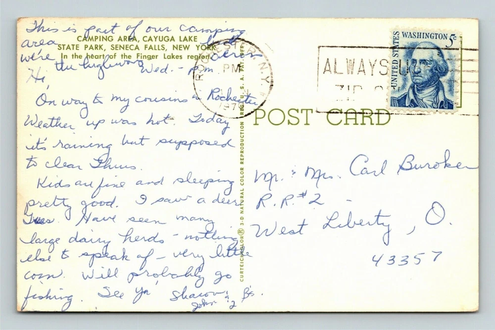 Seneca Falls NY-New York, Camping Area, Cayuga Lake c1970 Vintage Postcard