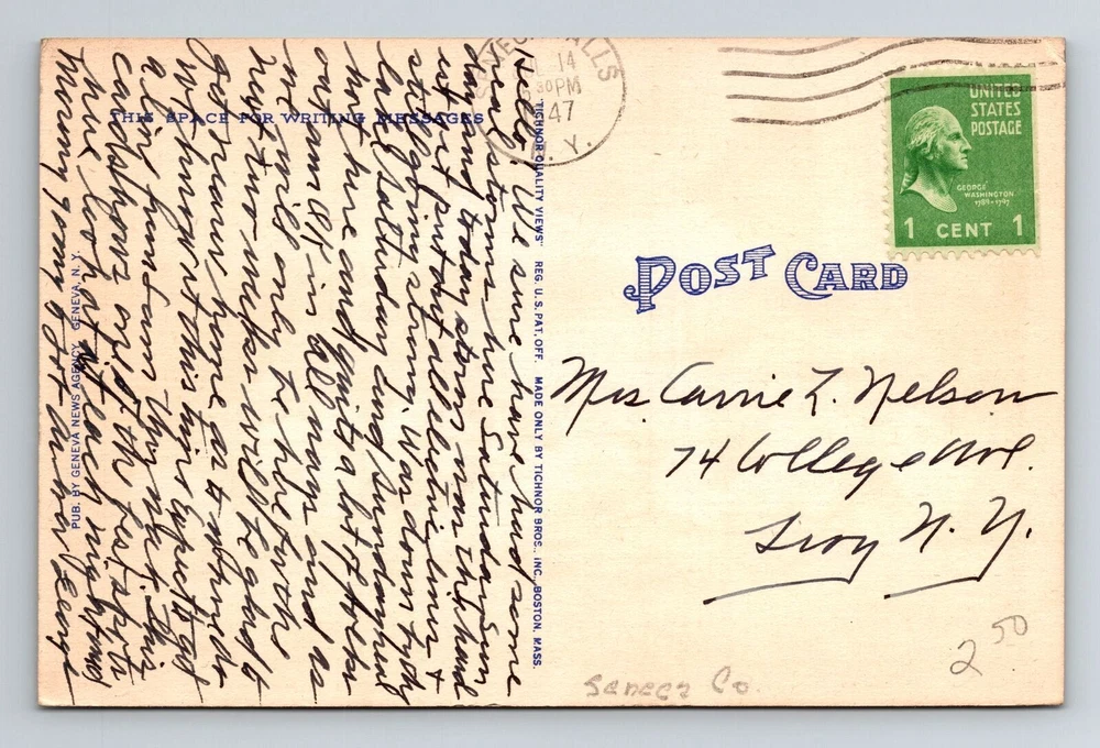 Postage Condition: See Image Type: Printed (Lithograph) Era: Vintage Region: New York Unit of Sale: Single Unit Original/Licensed Reprint: Original Theme: Cities & Towns Country: USA City: Seneca Falls Subject: Cities & Towns Country/Region of Manufacture: Unknown