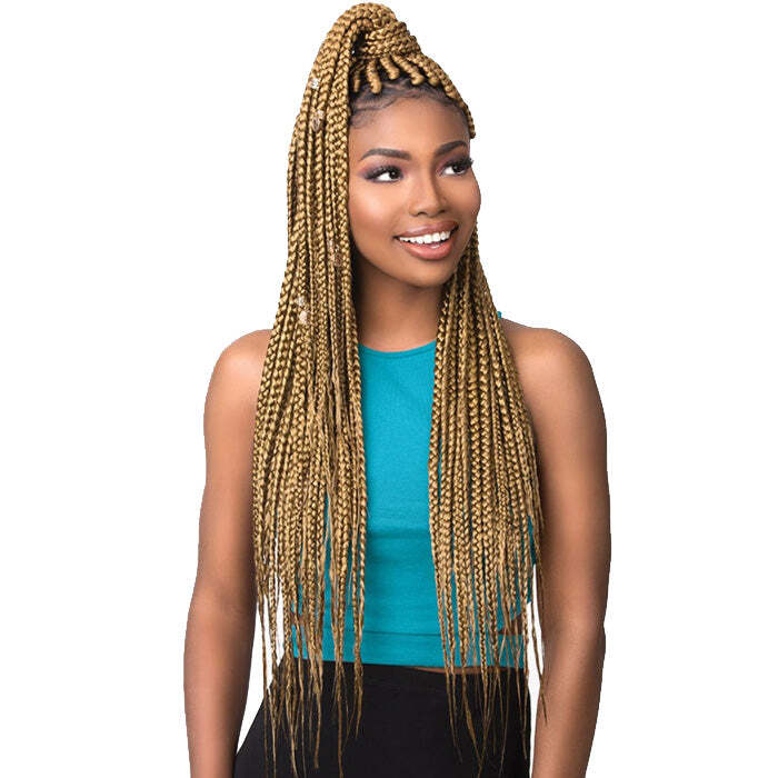Sensationnel Synthetic 3X RUWA PRE STRETCHED BRAID 18" COLOR SHOWN ON MODEL: 1B, 27 MATERIAL: Synthetic Hair TYPE: Braid LENGTH: 18 Inch HEAT SAFE: Yes DESCRIPTION: Made with Aquatex fiber from Kanekalon® Good for crochet braids Pre-stretched to save on prep time Water Repellent Hot water set Fast drying Lightweight and soft