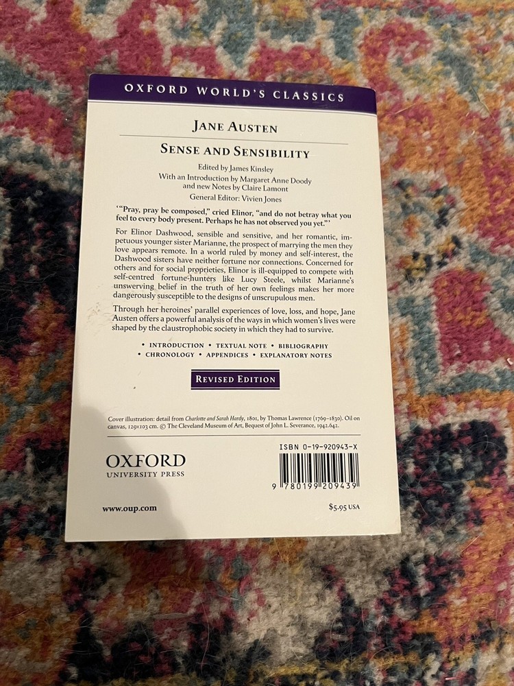 Illustrator: Yes Edition: 2 Book Series: Oxford World's Classics Ser. Features: Revised Book Title: Sense and Sensibility Format: Uk-Trade Paper Item Weight: 8.8 Oz MPN: Does not apply Brand: Unbranded Item Height: 0.6 in Genre: Fiction gtin13: 9780192804785 Item Length: 7.7 in Topic: Classics, Literary Publisher: Oxford University Press, Incorporated Item Width: 5.1 in Number of Pages: 384 Pages Publication Year: 2004 Language: English ISBN: 9780192804785 Author: Jane Austen