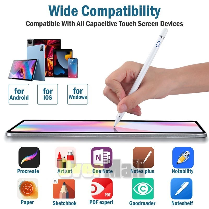Lápiz capacitivo de alta sensibilidad para tabletas iPhone iPad Pro Android BEST CUSTOMER SERVICE ON OUR sale2015express EBAY STORE↓ ↓ ↓ 〓SHIP From US Local Stock 〓FAST & Free, 1-6 Days Arrival 〓FREE Return, Seller Pay!! 〓QUICKLY Reply within 24 Working Hours 〓 MOST orders ship within 1 business day with Tracking Number 〓 ANY PROBLEM please email us before feedback, thanks! Add our listing to Watchlist Or Add to Cart , you will get more discount!!! Feature: 1. Continuous use up to 8-10 hours, 30 minutes without use will automatically power off, three-color LED lights indicate activity, charging or fully charged. 2. Stylish and simple style, aluminum alloy material and painting process, the pen tip is made of special conductive material, precision grinding, which can prevent damage to the screen. 3. The stylus is sensitive to pressure and tilt, so you can easily change line thickness, create subtle shadows, and produce various artistic effects. 4. This stylus adopts the latest technology to ensure that it is widely compatible with all touch screen products, suitable for most mobile phones, tablets, capacitive screens and other electronic devices. Specification: Model: 2262 Material: aluminum alloy Process: painting, electroplating Input: 5V-0.2A Applicable models: Universal (Apple and Android) Battery: 100mAh Charging time: 50 minutes Working time: 8-10 hours Charging time: 50 minutes Working time: 8-10 hours Charging interface: Micro charging interface Product size: 175 (length)*8.9 (diameter) mm/6.9*0.35inch Color box size: 21*6.1*2.1cm/8.3*2.4*0.83inch Compatibility with: All touch screen device, iPhones, iPads, iPods, Android Phones, Android Tablets, Windows Tablets, PC,iPad, iPod, Kindles, kindle fire, Nooks, samsung galaxy phones, tablets and smart phones. etc. For iPhone 12 / 12 mini / 12 Pro / 12 Pro Max / iPhone SE (2nd generation) /11 / 11 Pro / 11 Pro Max / XS / XS Max / XR / X / 8 Plus / 8/7 Plus/7/6 Plus/6/5; For Samsung Galaxy Note 20 / Note 20 Ultra / Note 10 / Note 10+/Note 9/Note 8/S10 / S10 + / 10e / S9 / S9 Plus etc. For Huawei Mate Mate 20 Pro / P30 Pro/Mate 30/Mate 30 Pro/P40/Mate 40 Pro/P20/P30,etc. Package includes: 1x Stylus 1x Manual 1x Micro Charging Cable 1x Pen Cap