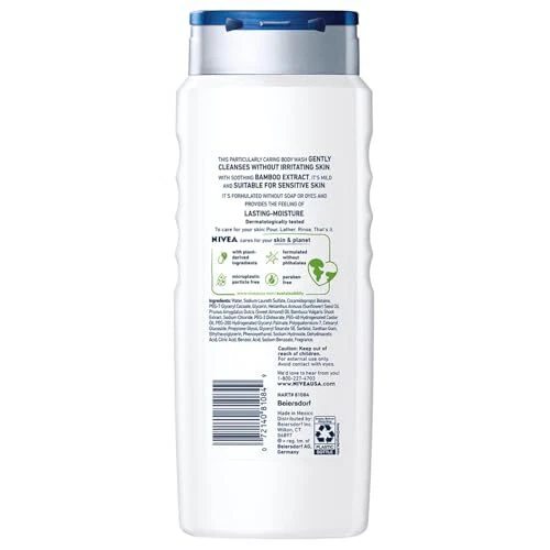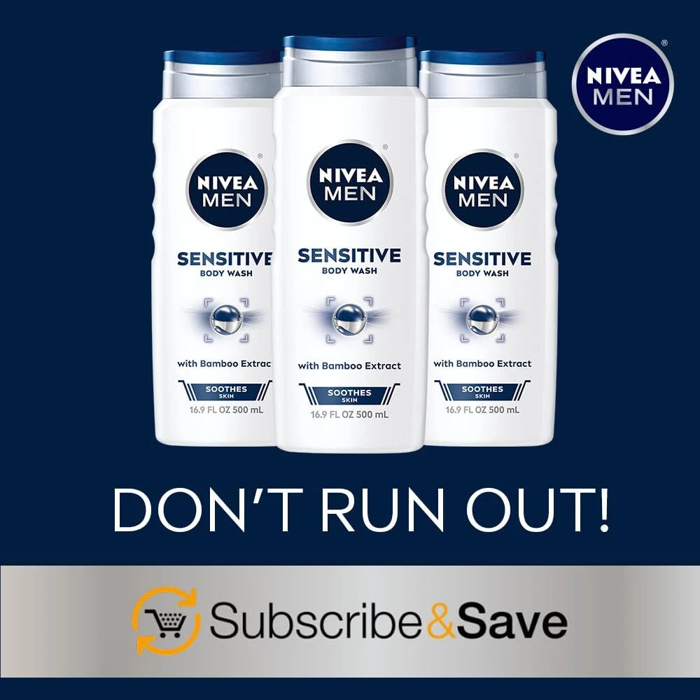 Sensitive Body Wash with Bamboo Extract, 3 Pack of 16.9 Fl Oz Bottles Multi-Use Body Wash: Sensitive Body Wash is suitable for use as a shaving gel, moisturizer, body wash and shampoo Gently Cleanses: This soap free body wash gently cleanses skin and provides the nourishing moisture skin needs Lightly Scented: Men's body wash with a light scent with citrus notes for a revitalizing experience Bamboo Extract and Almond Oil: body cleanser enriched with soothing Bamboo Extract and Almond Oil Includes three (3) 16.9 fluid ounce bottles of Sensitive Body Wash Take care of your skin with Sensitive Body Wash. This hydrating body wash is specially formulated for men with sensitive skin. Sensitive Body Wash is enriched with Bamboo Extract and Almond Oil to provide the nourishing moisture your skin needs. To make the most of your shower time, try this body wash as a shampoo. Specifically crafted for mens skin care needs, this refreshing body cleanser does not dry out skin, making it great for everyday use. This hydrating, gently cleansing, sensitive skin body wash is also soap free with no drying alcohol. It is also a phthalate and paraben free body wash that is formulated without microplastic particles. With a light scent and citrus notes, this NIVEA body wash for men provides a revitalizing experience that leaves you feeling fresh long after the shower. A moisturizing body wash is a key part of a skin care routine and pairs well with Sensitive Protective Lotion. To use, rub this mens body wash for sensitive skin into a lather while gently massaging over the body and rinse. Shipping We offer FREE shipping on all orders! We ship within Three business days of payment, usually sooner. We use a selection of shipping services such as UPS, FedEx, USPS etc. We only ship to the lower 48 states, no APO/FPO addresses or PO Boxes allowed. Local pickups and combined shipping options are not provided at this time. Return You can return a product for up to 30 days from the date you purchased it. Any product you return must be in the same condition you received it and in the original packaging. Please keep the receipt. Payment We accept payment by any of the following methods: PayPal Please pay as soon as possible after winning an auction, as that will allow us to post your item to you sooner! Feedback Customer satisfaction is very important to us. If you have any problem with your order, please contact us and we will do our best to make you satisfied. Contact Us If you have any queries, please contact us via ebay. We usually respond within 24 hours on weekdays. Please visit our eBay store to check out other items for sale! Thank you for shopping at our store.