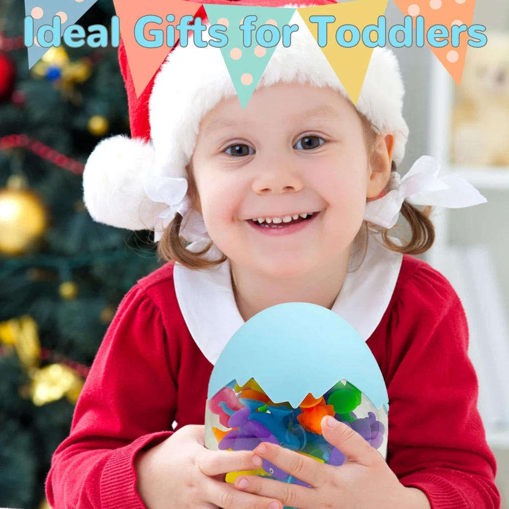 Creative Suction Toys : These are bath suction toys for kids ages 3-8,Be funny at Building ,stick, connect, hands eyes coordination , shape cognition ,color cognition ,spatial cognition,practical ability. A autism friendly of stress release toys, also an excellent learning resource. Multiple Ways to Play : Cute and entertaining suction cup toys Provides lots of fun for bath times, car trips, windows, school lockers, highchairs, or office desktops; suction toys leaves room for every kid's imagination. Suction Bath Toys for Kids : These silicone suction toys can be connected to each other with bottom cups in all directions, and can also be used in bathroom, window and while traveling. During the process of connection and removal, kids can hear pleasant POP sounds. Soaking in warm water for 3-5s, or moisturizing the bottom, the soft cup can produce stronger suction. Safe & Premium : The sensory sucker toys are made of non-toxic silicone, BPA free,No bad smell or any sharp edges and corners, is safe enough for babies aged 3 years old. Ideal Gifts for Kids : These very cute sucker toys are great stocking stuffers for kids that will bring big smiles and bring quality family time at Christmas. It's also great as a prize for children's classrooms, birthday parties, and other party favors. Product Description Toddler Educational Develop Toys Parent-child Interaction This Montessori suction cups toy set encourages parent-child interaction in play. Parents can explore different ways of suction toys, and bring more companionship and happiness to their kids during the growing period of 4-8. Bath Toy Our suction cups are excellent for babies' bath time. After being dipped in water, the suction is stronger. It can float in the water or stick to the tub. Window Toy Kid can use their imagination to decorate window with suction cups.It leaves no marks when separated and does not damage the surface of the adsorbent. Travel Toy If toddlers is always noisy when traveling, suction cups will be a good choice!Cute animal shape can attract the baby's attention and keep baby quiet. Easy to Stick Easy to Storage Easy to Clean Ideal Gift for Kid 3+ Years Old Our sensory toy set come with an cute sucker toys equipped with egg storage. This portable and cute design is a great gift choice for 3 4 5 6 7 year old boys and girls on birthdays, Easter, National Child Day, Halloween and so on.