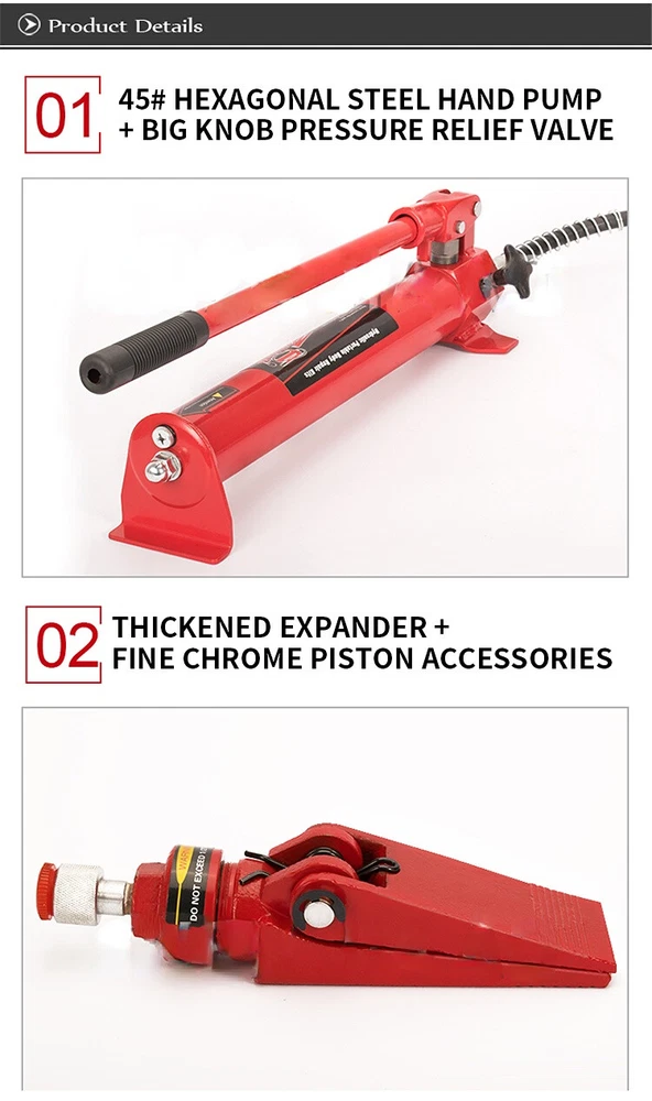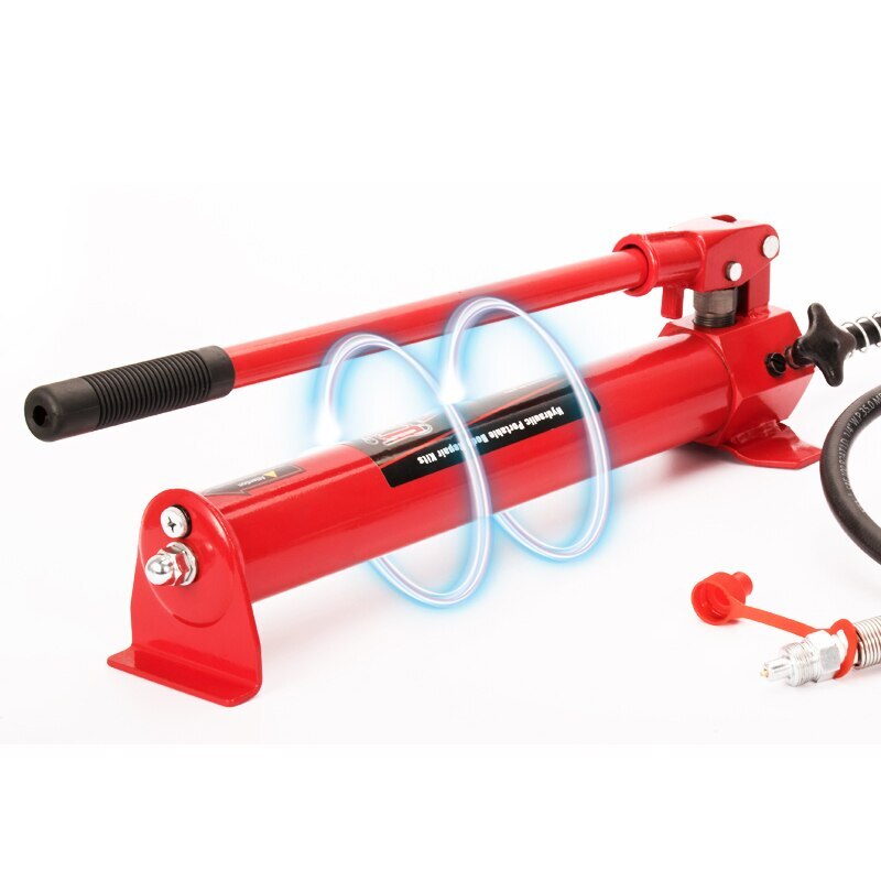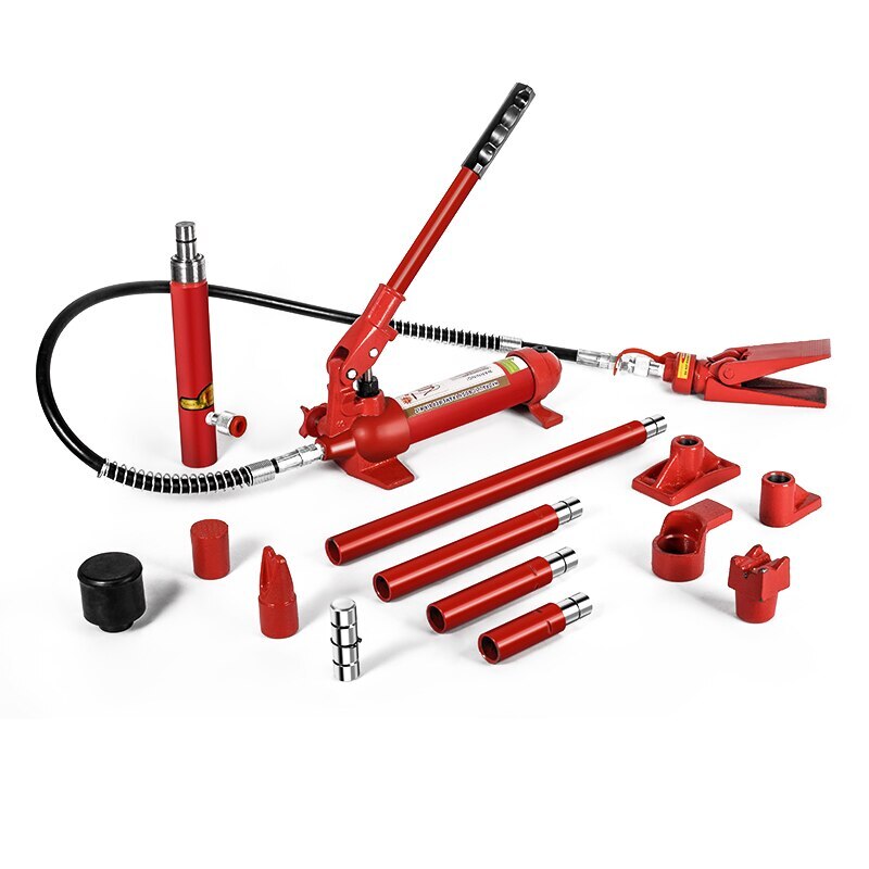 Name: Separate hydraulic jack Jacking weight: 10T Shrinking height: 325mm Lifting height: 460mm Post length: 120CM Packing weight: 32KG Packing size: 42*75*20CM 10 Ton Power Hydraulic Cylinder Jack 1.2M Oil Tube Autobody Frame Repair Kit 15PCS Truck Farm Lifting Jack Heavy Equipment