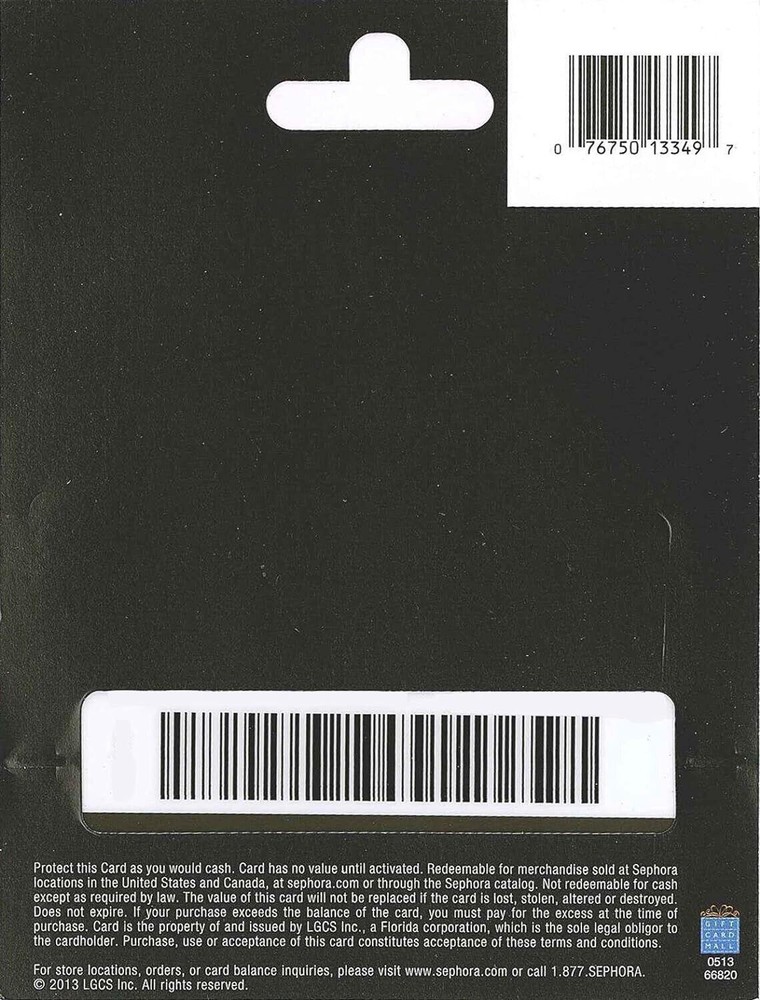 CONTACT US DIRECTLY FOR FREE & PREPAID RETURNS Sephora Gift Card $100 Gifting Card Gift for Girl Makeup Lover Card Sephora is a leader in prestige omni-retail, with the mission of creating an inviting, personalized, and inclusive beauty shopping experience for clients. Sephora offers a diverse assortment of products across make-up, skincare, hair, and fragrance categories from more than 360 curated brands Brands include Charlotte Tilbury, Sol de Janeiro, Nars, Dior, in addition to must-have brands like Rare Beauty, Glow Recipe, and Summer Fridays. You have access to over 25,000 products. Sephora gift cards can be redeemed for merchandise in Sephora stores, on Sephora.com, on Sephora’s U.S. mobile app, and Sephora at Kohl's stores. Please see Legal Disclaimer below for terms and conditions applicable to Sephora gift cards. REVIEWS The product came very well packaged. I'm very happy. thank you for everything. Seller strongly recommended. This is great! I definitely recommend! Product looks amazing Delivery was fast. Excellent seller, great communication. I advise everyone