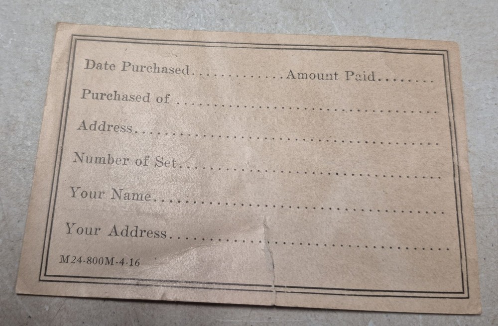 Here is an original Inspector's Vouchers that was included in Erector sets manufactured by A.C. Gilbert Co. in 1916. This particular Voucher is dated Sept 19, 1916. 1916 was the year Mysto Mfg. Co. was reorganized as the A.C. Gilbert Company. The printing on the Voucher is faint but legible.