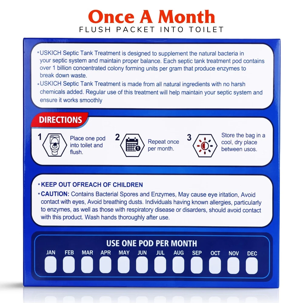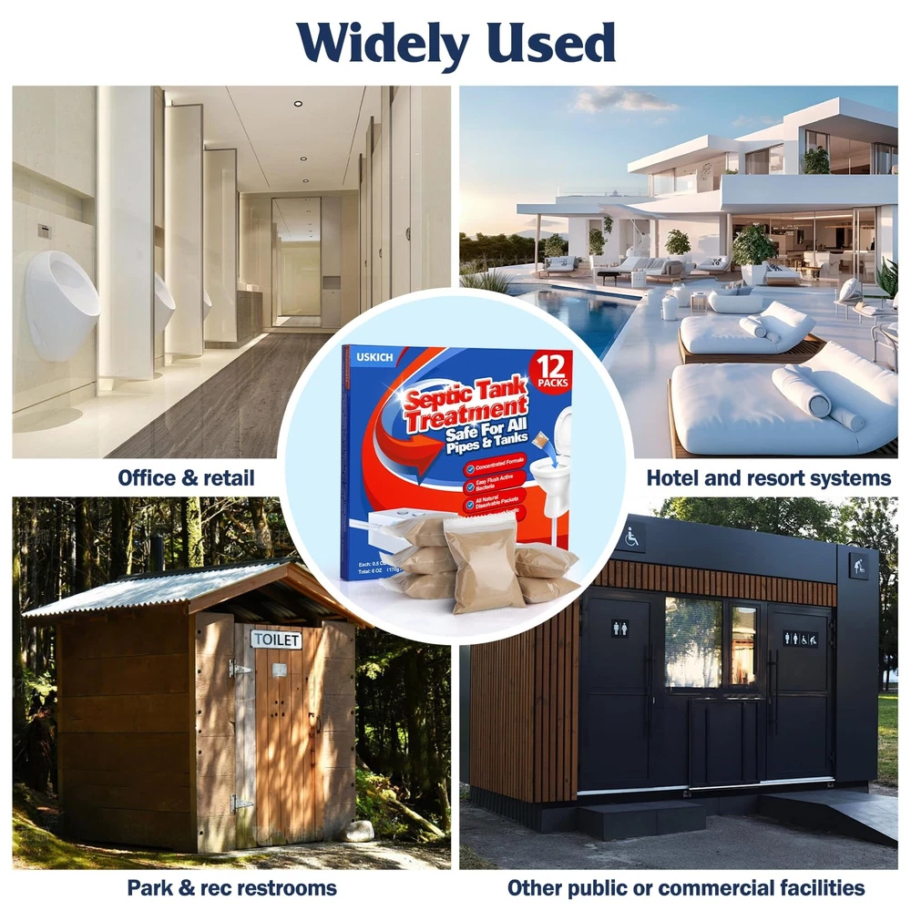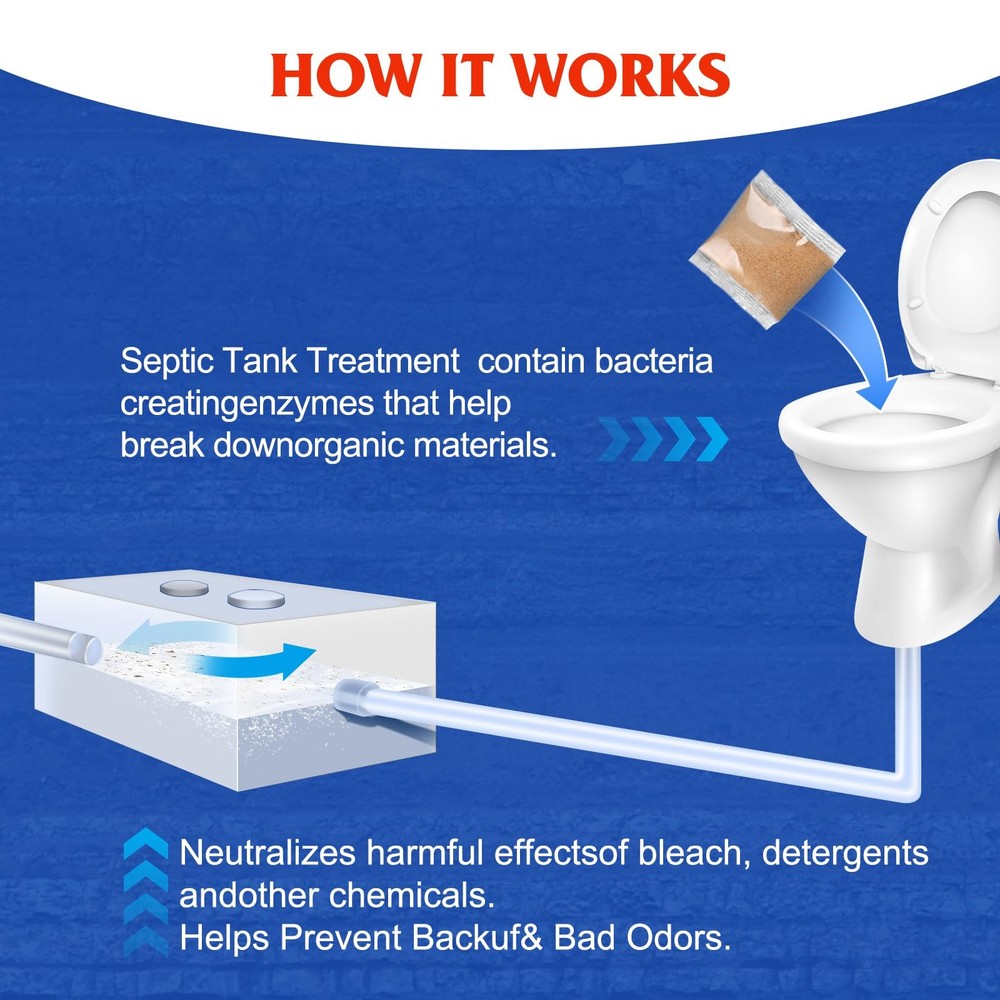 Septic Tank Treatment - 1 Year Supply of Septic Safe Dissolvable Easy Flush Live Bacteria Packets -12 Count,Friendly and Powerful Solution for Septic Systems 🌿 Efficient Biodegradation:Each septic tank treatment packet contains billions of active bacteria cultures,septic tank enzymes that can efficiently dissolve grease, paper, and other wastes, which reduces buildups and prevents them from overflowing, saving the trouble of costly maintenance for septic tanks. 🌿Effective Removal and Eliminates Odor:The enzymes in the septic tank treatment can dissolve organic wastes adhering to the sewer pipelines, thus effectively removing odors caused by these wastes in your bathroom. they aid in controlling and getting rid of bad smells too. that this efficient septic tank cleaner will make your bathroom time way more pleasant. 🌿 Natural, Environmentally Friendly:Septic tank cleaners are made of safe ingredients without any corrosive substances and chemical additives. septic tank cleaners will not damage the home pipelines at all. They’re safe for all home plumbing lines, any black water system or cesspool, and both aerobic and anaerobic septic systems, Flush each packet down your toilet with absolute confidence! 🌿Easy Operation: Septic treatment is the easiest and most efficient way to prevent expensive septic tank backups and drain field repairs. You only need to monthly drop a pack into the downstairs toilet bowl and flush the toilet until the pack is swept away. Each pack of septic tank cleaner lasts for 1 month in a septic tank of 1000-1500 gallons, and the 12 packs in total can continuously clean septic tanks for a whole year! 🌿Wide Application: The safe ingredients make the septic treatment suitable for almost all septic systems and sewage systems. It can be widely used for household septic tanks, commercial sewage tanks, and sewage tanks in boats or RVs. Just one cleaner keeps numerous septic tank problems away! Septic Tank Treatment,1 Year Supply Septic Pods (12 pcs),1 Flush per Month Septic System Treatment Dissolvable Easy Flush Live Bacteria Packets-Friendly and Powerful Solution for Septic Systems Shipping We offer FREE shipping on all orders! We ship within Three business days of payment, usually sooner. We use a selection of shipping services such as UPS, FedEx, USPS etc. We only ship to the lower 48 states, no APO/FPO addresses or PO Boxes allowed. Local pickups and combined shipping options are not provided at this time. Return You can return a product for up to 30 days from the date you purchased it. Any product you return must be in the same condition you received it and in the original packaging. Please keep the receipt. Payment We accept payment by any of the following methods: PayPal Please pay as soon as possible after winning an auction, as that will allow us to post your item to you sooner! Feedback Customer satisfaction is very important to us. If you have any problem with your order, please contact us and we will do our best to make you satisfied. Contact Us If you have any queries, please contact us via ebay. We usually respond within 24 hours on weekdays. Please visit our eBay store to check out other items for sale! Thank you for shopping at our store.