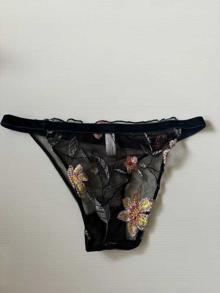 Type: Panties Accents: Embroidered Size: 2 Brand: Serendipity Theme: Flower Size Type: Regular Department: Women Color: Black Fabric Type: Mesh Style: Thong/String Pattern: Floral Features: Breathable, Stretch