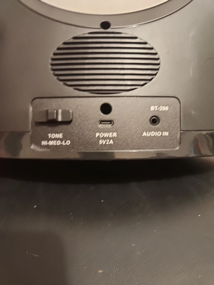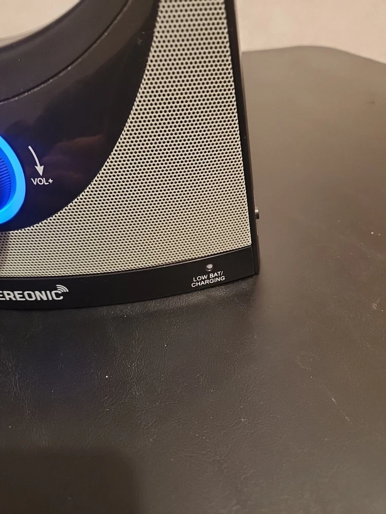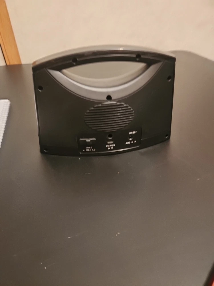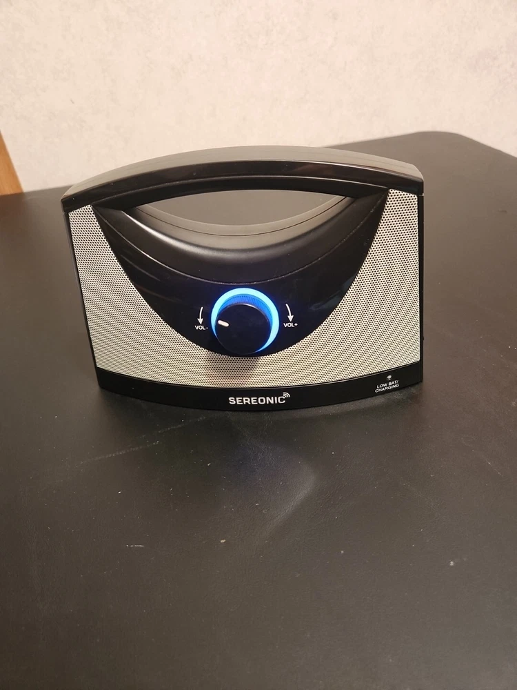 The product is a Serene Innovations Sereonic Replacement Speaker for the BT-200 model. It is a rectangular-shaped smart speaker in gray color with wireless and wired connectivity options. Please note that the base is not included with this speaker.