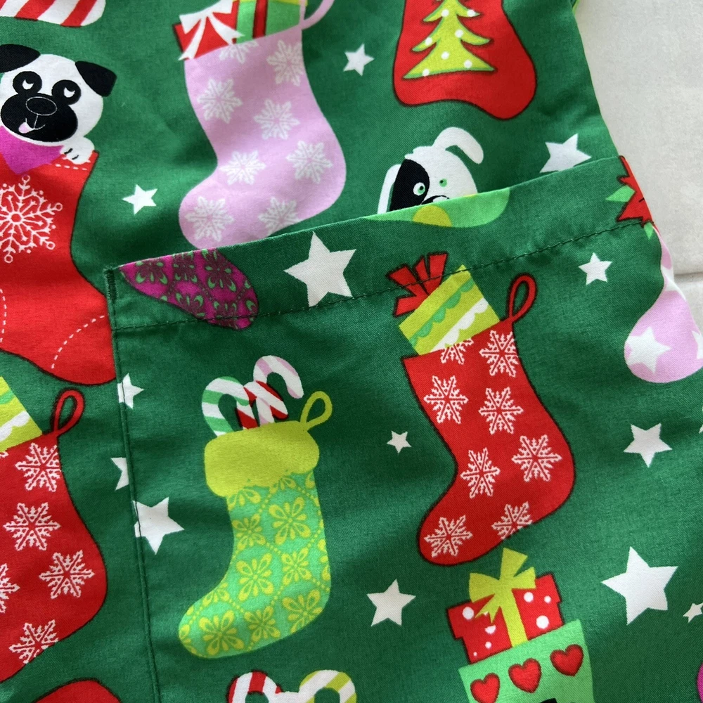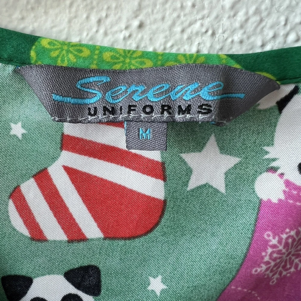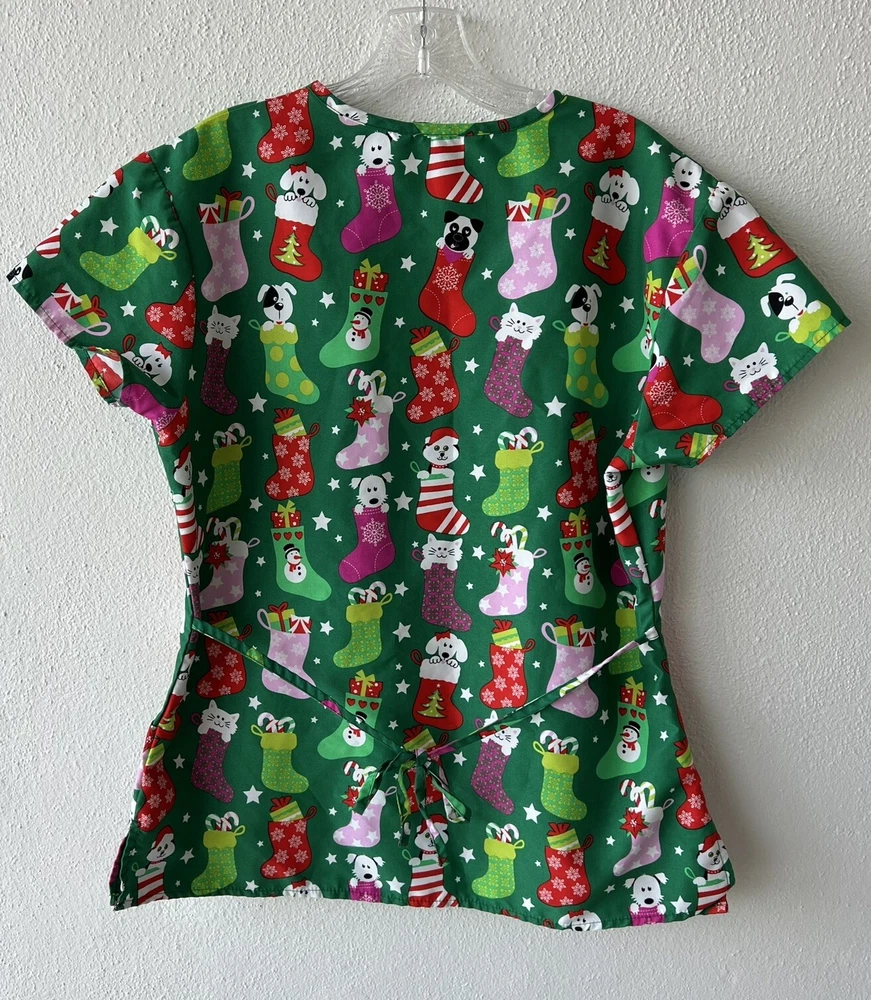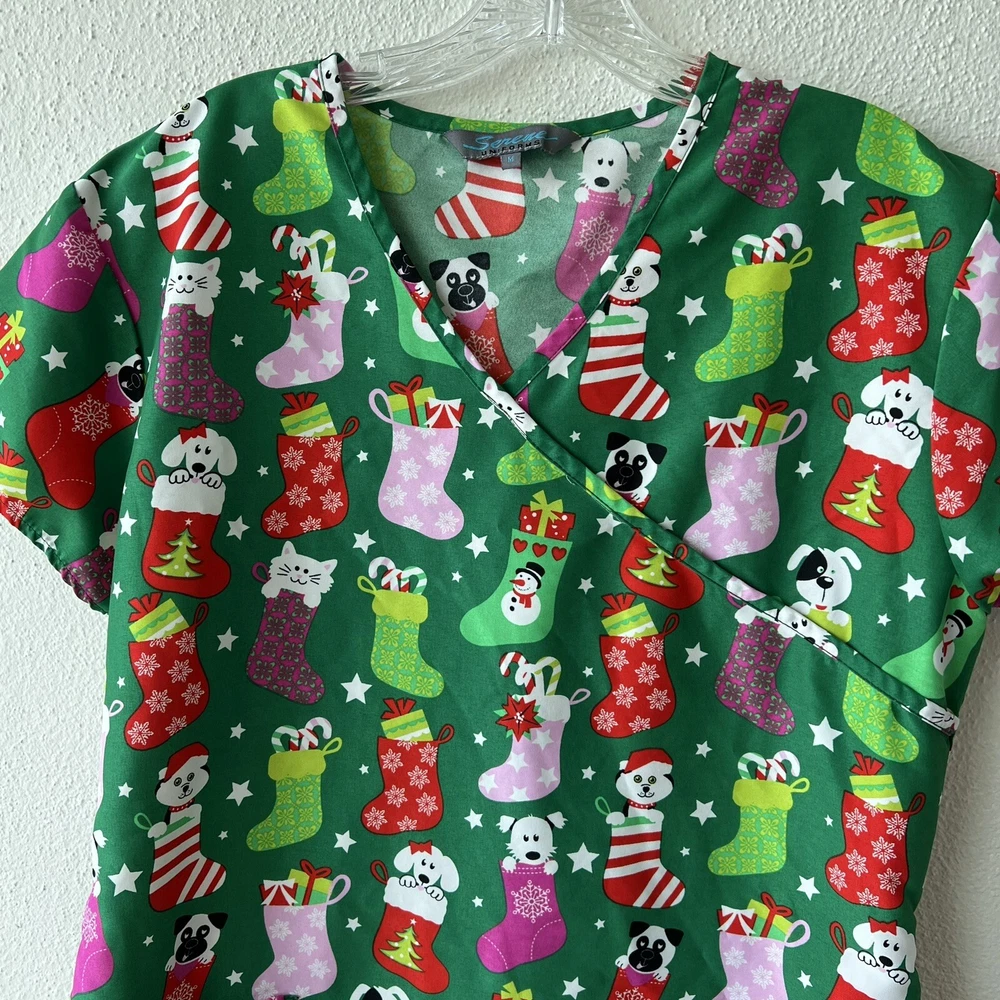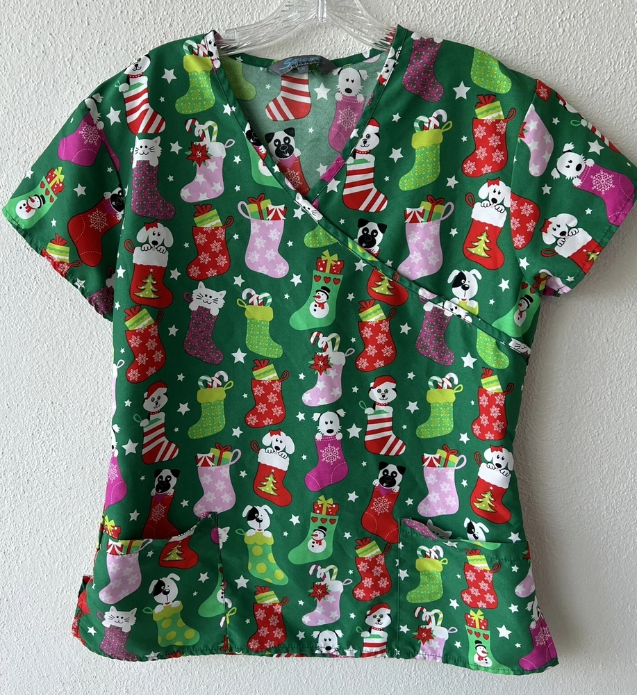 Pattern: Puppy Christmas Stocking Material: Polyester Color: Green Gender: Women Size: M Brand: Serene Uniforms Industry: Medical