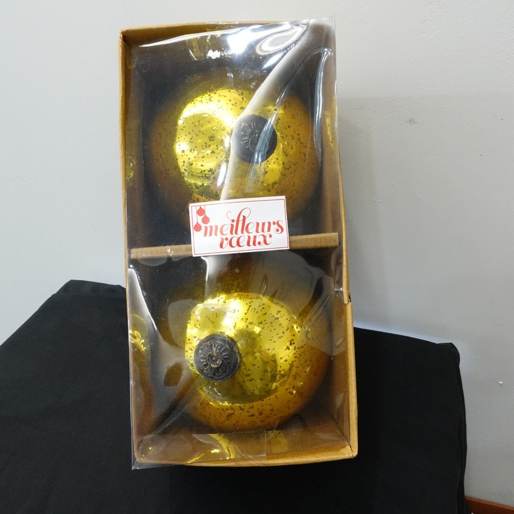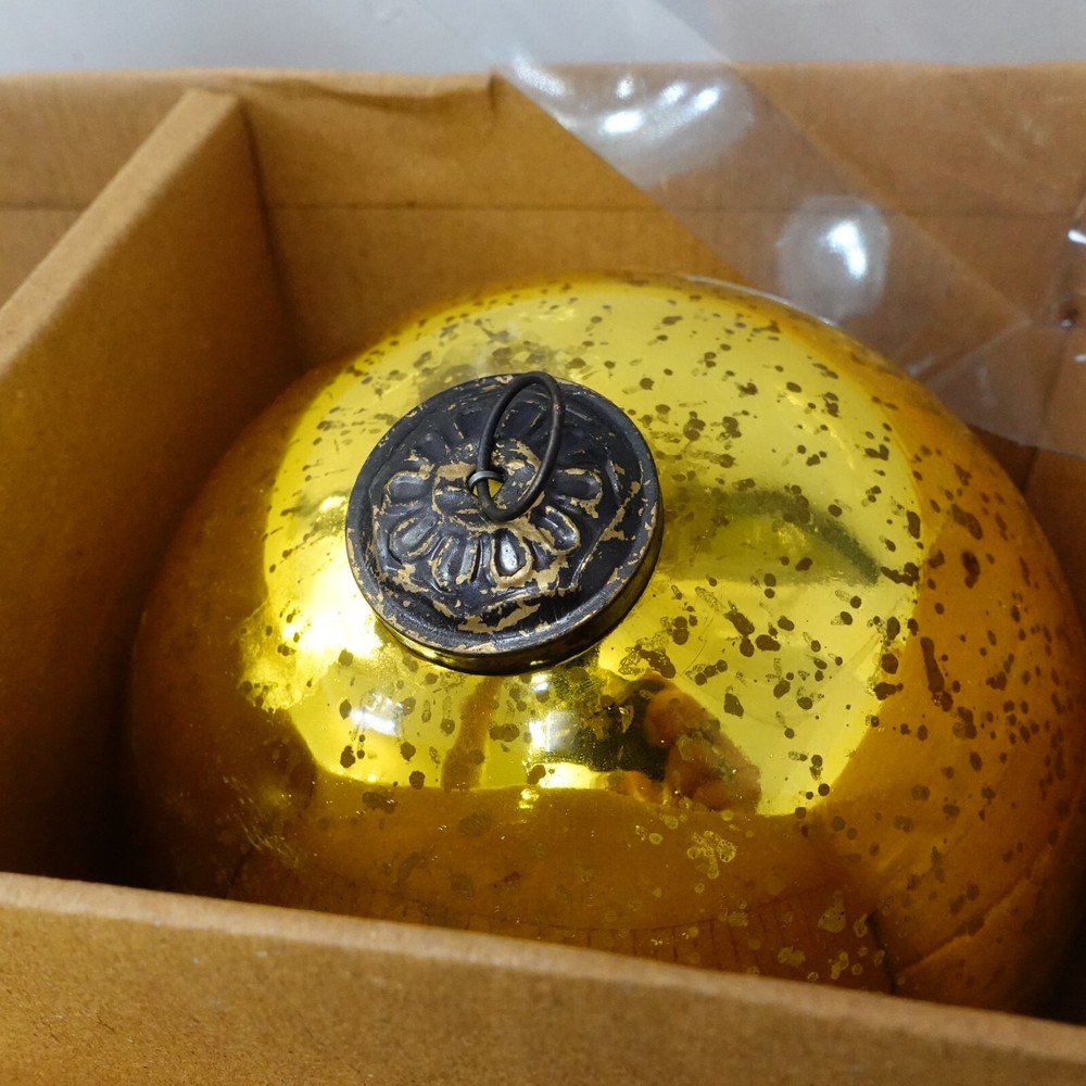 Welcome to my e B a y Store Serene Space Living 2 Piece Antique Gold Mercury Glass Ball Large Ornament with Bronze Cap Set Height - 7.5" Tall Diameter - 6" Circumference - 19.25" Weight - 10 Oz. approx. per ornament Bid With Confidence Feel Free to ask any questions before bidding please If you would like additional pictures please send me a message Check out my other listings for more great deals! 100% Authentic or your Money Back Guarantee!! Free Shipping on All Items!