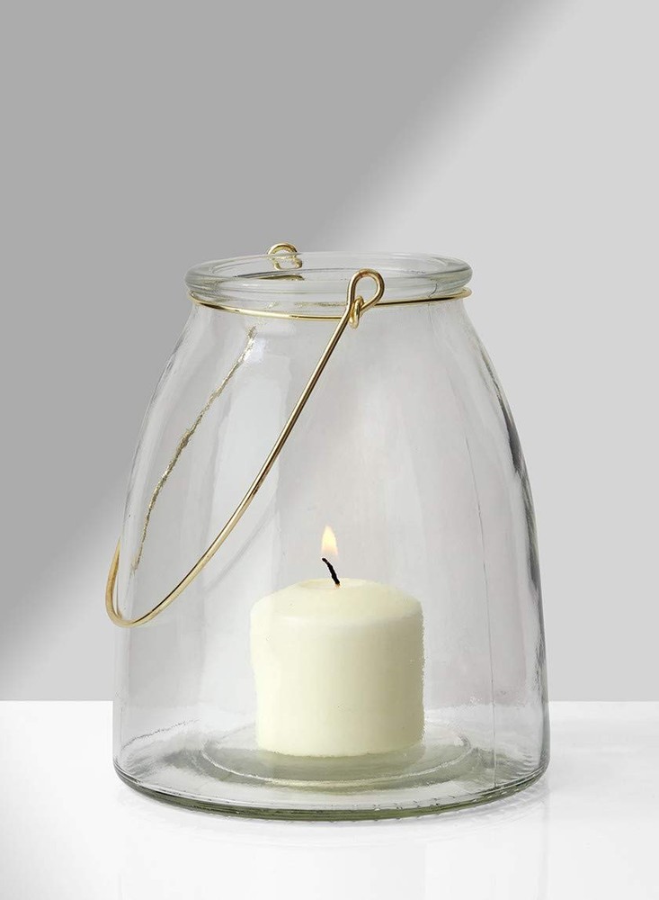 RUSTIC JARS - This simple and elegant glass jar is wider at the bottom and tapers towards the rim METAL HANDLE - An easy to hang gold wire handle adds a touch of class to this outdoor patio hanging lamp. Note: These products are handmade, hence spots and indentations are normal. VERSATILE MASON JAR - Fill it with dried flowers or a mix of wildflowers for a vibrant floral display CREATE AN AMBIENCE - Add fairy firefly string lights or a pillar candle for soft lighting at a porch/ patio/ yard CONVENIENT SIZE - Sold as a set of 12, the vintage style glass vase measures 6" Tall and 5" Diameter