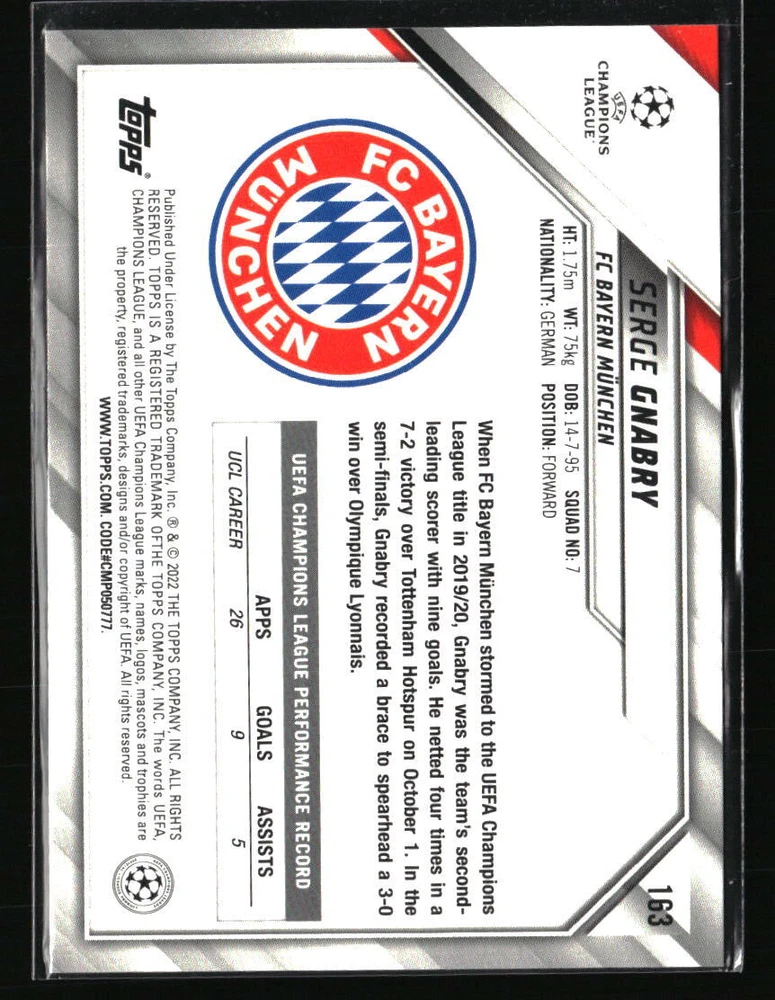 Serge Gnabry 2021 Topps UEFA Champions League #163 Soccer Card