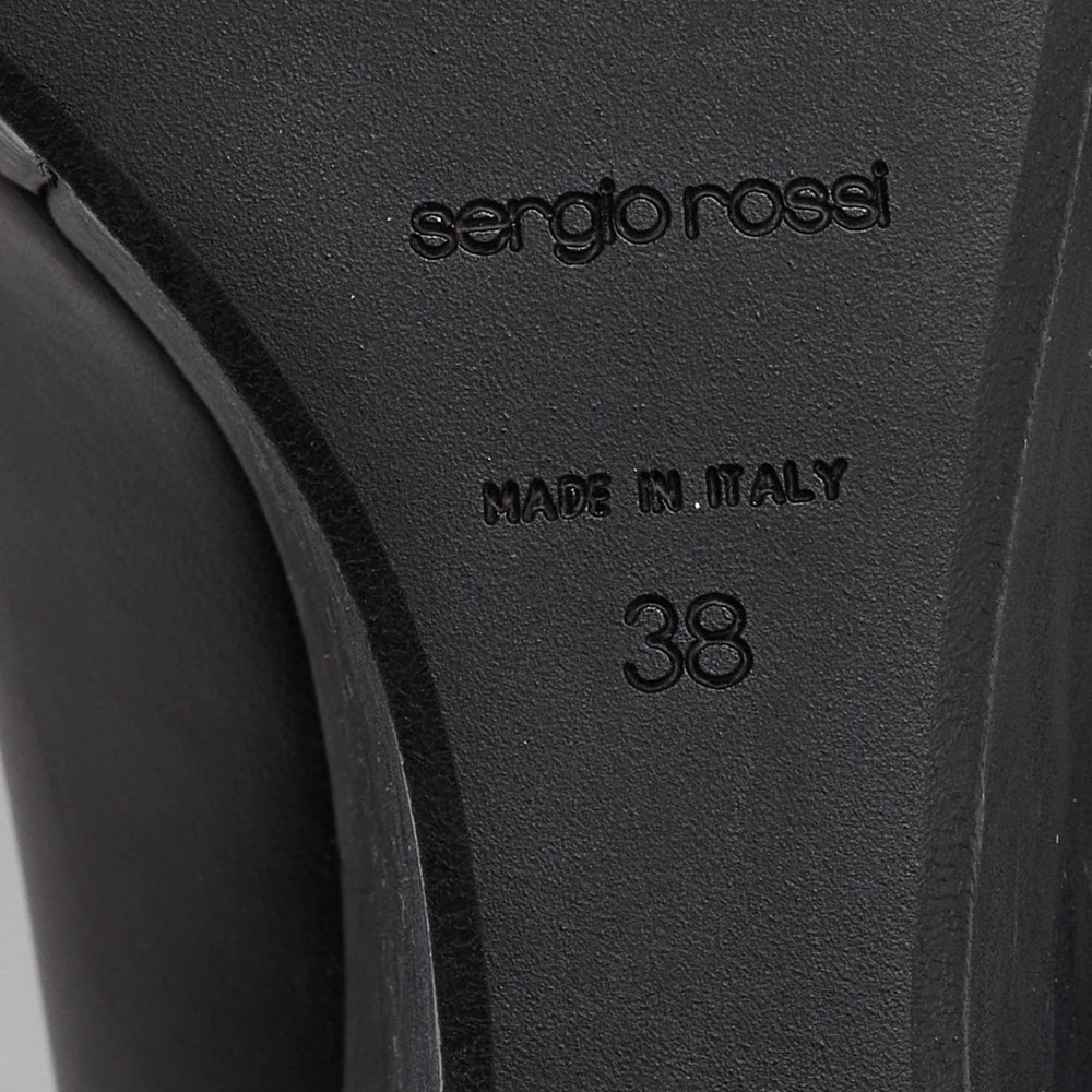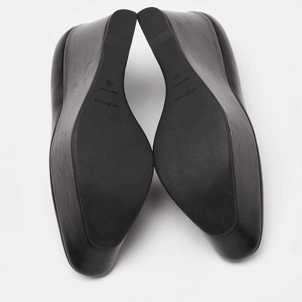 Our eBay Store About Us Contact Us Add to Favorite Sellers Sergio Rossi Black Leather Wedge Platform Pumps Size 38 Make a chic style statement with these designer pumps. They showcase sturdy heels and durable soles, perfect for your fashionable outings! Product Details Brand Sergio Rossi Color Black Includes The Luxury Closet Packaging Outsole Length 26 cm Outsole Width 6.5 cm Size 38 Certified by The Luxury Closet This item has gone through a detailed authentication process overseen by our experts. We offer a lifetime guarantee of authenticity on all our items. How We Check The in-house team of experts at The Luxury Closet is highly trained to verify the authenticity and the condition of the luxury products. They ensure that only 100% authentic items are put on sale.The evaluation process is unique with its own mix of assessment criteria and differs according to the category. Each item is evaluated based on the following combination of hallmarks, hardware, stitching, symmetry, material, craftsmanship, stamping, codes, hologram stickers, and packaging. Our authenticators also check if the items have been modified or amended (e.g., aftermarket diamonds, replaced batteries, repaired bags, etc.) International Buyers Import duties, taxes and charges are not included in the item price. These charges are the buyers responsibility. Please check with your country’s customs office to determine what these additional cost will be prior to buying.
