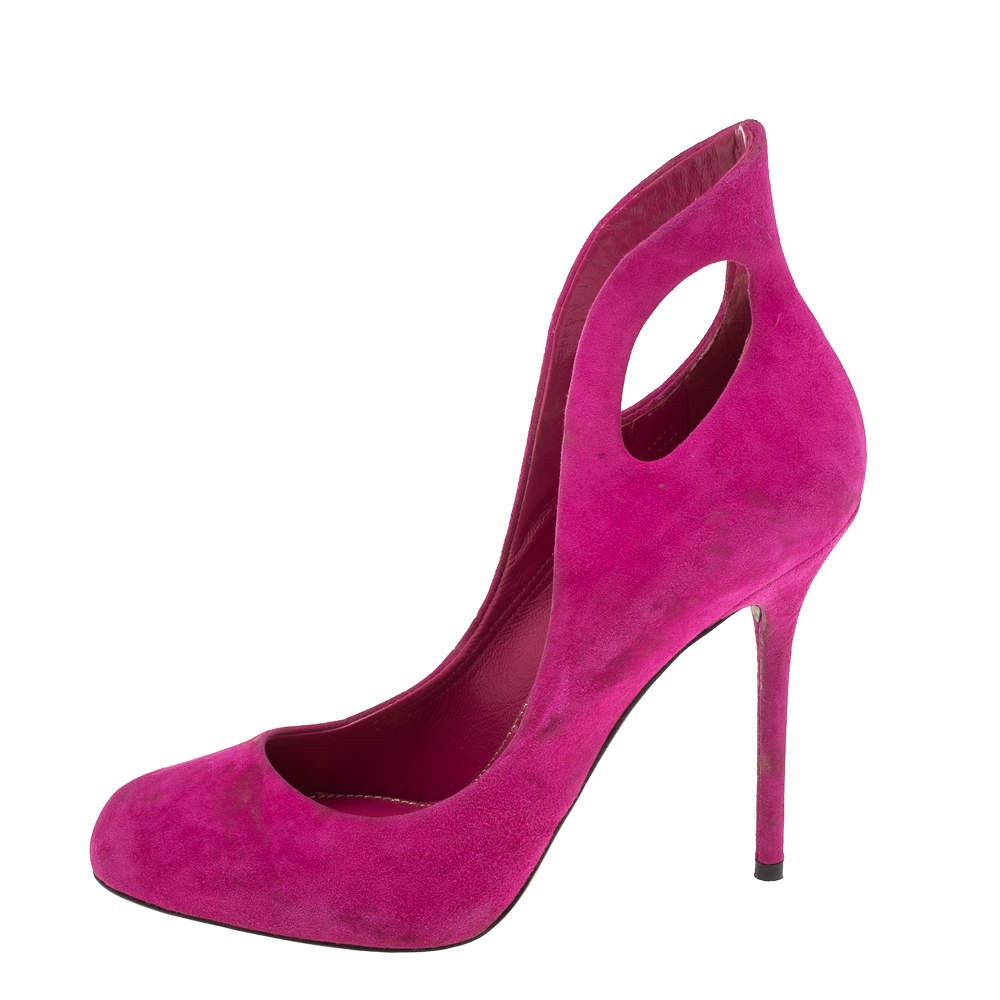 Our eBay Store About Us Contact Us Add to Favorite Sellers Sergio Rossi Magenda Suede Oblo Cut Out Pumps Size 36 How gorgeous are these pumps from Sergio Rossi! These magenta sandals are crafted from suede and feature a round toe silhouette. They flaunt cutout detailed counters. They come equipped with comfortable leather-lined insoles and 11 cm heels. They'll look great with your knee-length dresses and chic jumpsuits! Product Details Brand Sergio Rossi Color Pink Includes The Luxury Closet Packaging Size 36 Outsole Length 21 cm Outsole Width 7.5 cm Certified by The Luxury Closet This item has gone through a detailed authentication process overseen by our experts. We offer a lifetime guarantee of authenticity on all our items. How We Check The in-house team of experts at The Luxury Closet is highly trained to verify the authenticity and the condition of the luxury products. They ensure that only 100% authentic items are put on sale.The evaluation process is unique with its own mix of assessment criteria and differs according to the category. Each item is evaluated based on the following combination of hallmarks, hardware, stitching, symmetry, material, craftsmanship, stamping, codes, hologram stickers, and packaging. Our authenticators also check if the items have been modified or amended (e.g., aftermarket diamonds, replaced batteries, repaired bags, etc.) International Buyers Import duties, taxes and charges are not included in the item price. These charges are the buyers responsibility. Please check with your country’s customs office to determine what these additional cost will be prior to buying.