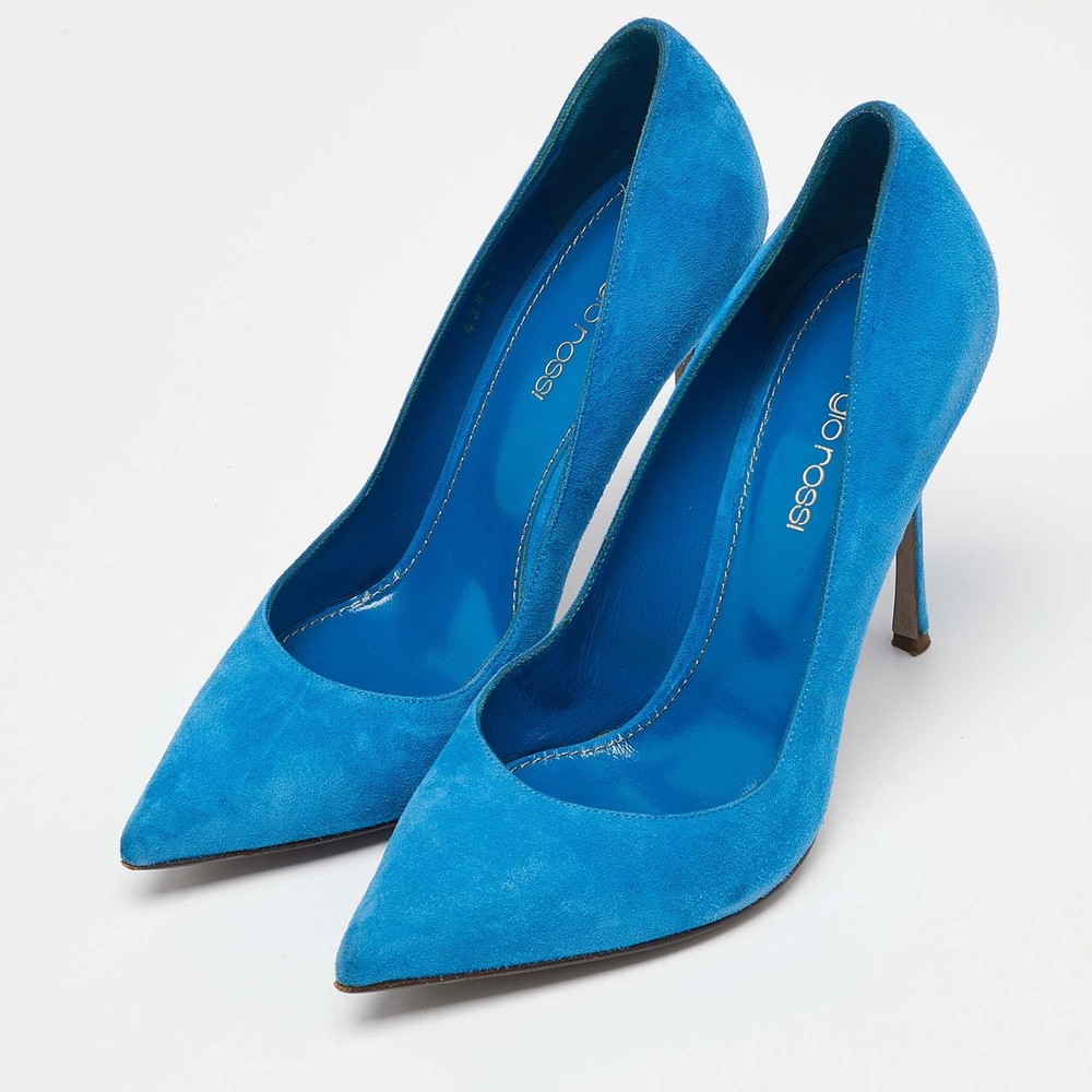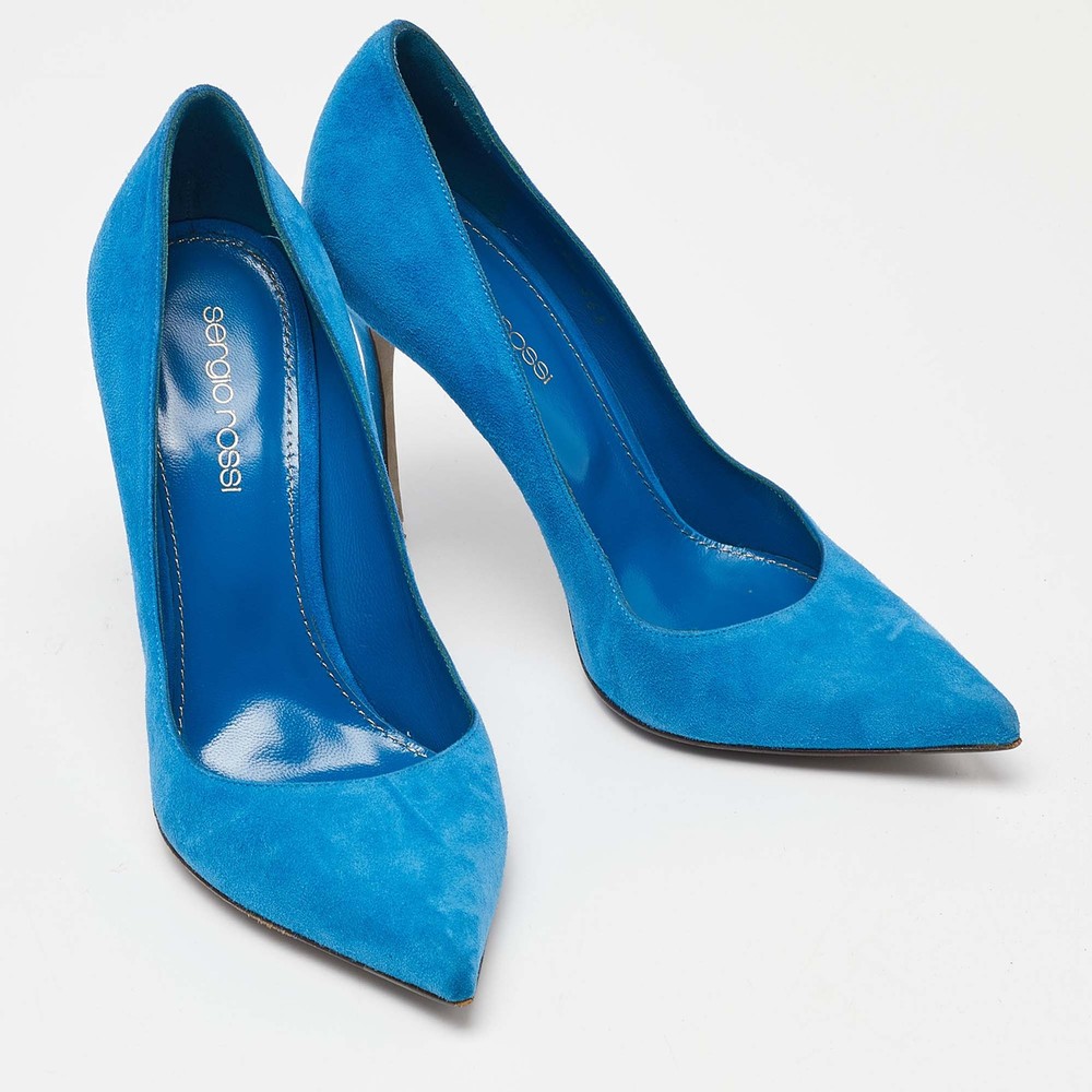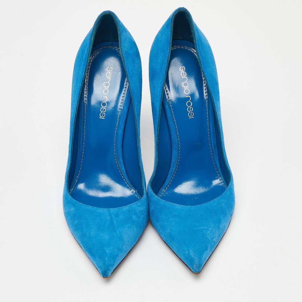 Make a chic style statement with these designer pumps. They showcase sturdy heels and durable soles, perfect for your fashionable outingsCertified by The Luxury Closet - This item has gone through a detailed authentication process overseen by our experts. We offer a lifetime guarantee of authenticity on all our items. Import duties, taxes and charges are not included in the item price. These charges are the buyers responsibility. Please check with your country’s customs office to determine what these additional cost will be prior to buying. Our eBay Store About Us Contact Us Add to Favorite Sellers Sergio Rossi Navy Blue Suede Pointed Toe Pumps Size 36.5 $134.2 Make a chic style statement with these designer pumps. They showcase sturdy heels and durable soles, perfect for your fashionable outings Product Details Brand Color Blue Dimensions Material Suede Size 36.5 Outsole Width 8 cm Outsole Length 22.5 cm Heel Height 11 cm Includes Original Dustbag Certified by The Luxury Closet This item has gone through a detailed authentication process overseen by our experts. We offer a lifetime guarantee of authenticity on all our items. How We Check The in-house team of experts at The Luxury Closet is highly trained to verify the authenticity and the condition of the luxury products. They ensure that only 100% authentic items are put on sale.The evaluation process is unique with its own mix of assessment criteria and differs according to the category. Each item is evaluated based on the following combination of hallmarks, hardware, stitching, symmetry, material, craftsmanship, stamping, codes, hologram stickers, and packaging. Our authenticators also check if the items have been modified or amended (e.g., aftermarket diamonds, replaced batteries, repaired bags, etc.) International Buyers Import duties, taxes and charges are not included in the item price. These charges are the buyers responsibility. Please check with your country’s customs office to determine what these additional cost will be prior to buying.