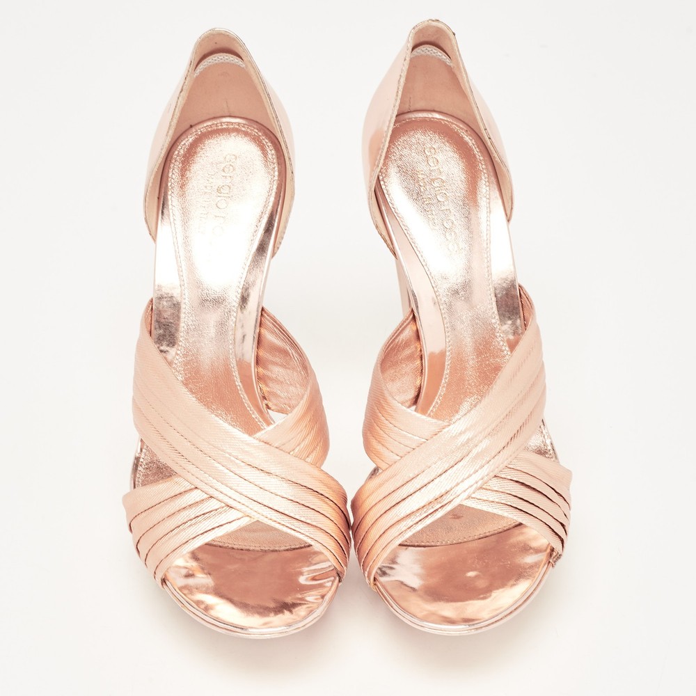 Embrace the allure of luxury with these rose gold Dorsay pumps from Sergio Rossi, a perfect blend of Italian craftsmanship and elegant design. Crafted from sumptuous leather, they offer an all leather composition from exterior to sole, promising unparalleled comfort. The slip on style ensures effortless wear, while the delicate platform adds just the right amount of lift. Ideal for sophisticated wardrobes, these pumps exude a touch of gold glamour, making them an exquisite choice for fashion forward women.Certified by The Luxury Closet - This item has gone through a detailed authentication process overseen by our experts. We offer a lifetime guarantee of authenticity on all our items. Import duties, taxes and charges are not included in the item price. These charges are the buyers responsibility. Please check with your country’s customs office to determine what these additional cost will be prior to buying. Our eBay Store About Us Contact Us Add to Favorite Sellers Sergio Rossi Rose Gold Leather D'orsay Pumps Size 36.5 $125.4 Embrace the allure of luxury with these rose gold Dorsay pumps from Sergio Rossi, a perfect blend of Italian craftsmanship and elegant design. Crafted from sumptuous leather, they offer an all leather composition from exterior to sole, promising unparalleled comfort. The slip on style ensures effortless wear, while the delicate platform adds just the right amount of lift. Ideal for sophisticated wardrobes, these pumps exude a touch of gold glamour, making them an exquisite choice for fashion forward women. Product Details Brand Color Gold Dimensions Material Leather Size 36.5 Outsole Width 8 cm Outsole Length 21 cm Heel Height 10 cm Includes Original Dustbag, Original Box Certified by The Luxury Closet This item has gone through a detailed authentication process overseen by our experts. We offer a lifetime guarantee of authenticity on all our items. How We Check The in-house team of experts at The Luxury Closet is highly trained to verify the authenticity and the condition of the luxury products. They ensure that only 100% authentic items are put on sale.The evaluation process is unique with its own mix of assessment criteria and differs according to the category. Each item is evaluated based on the following combination of hallmarks, hardware, stitching, symmetry, material, craftsmanship, stamping, codes, hologram stickers, and packaging. Our authenticators also check if the items have been modified or amended (e.g., aftermarket diamonds, replaced batteries, repaired bags, etc.) International Buyers Import duties, taxes and charges are not included in the item price. These charges are the buyers responsibility. Please check with your country’s customs office to determine what these additional cost will be prior to buying.