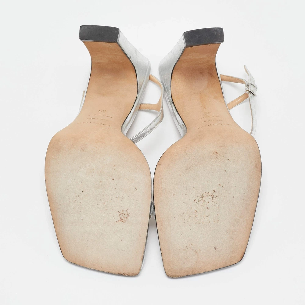 Our eBay Store About Us Contact Us Add to Favorite Sellers Sergio Rossi Silver Leather Ankle Strap Sandals Size 39 Designed for shine and structure, these Sergio Rossi silver leather sandals feature a sleek ankle strap and an open-toe silhouette. A versatile piece that transitions effortlessly from day to night. Product Details Brand Sergio Rossi Color Silver Heel Height 10 cm Material Leather Size 39 Certified by The Luxury Closet This item has gone through a detailed authentication process overseen by our experts. We offer a lifetime guarantee of authenticity on all our items. How We Check The in-house team of experts at The Luxury Closet is highly trained to verify the authenticity and the condition of the luxury products. They ensure that only 100% authentic items are put on sale.The evaluation process is unique with its own mix of assessment criteria and differs according to the category. Each item is evaluated based on the following combination of hallmarks, hardware, stitching, symmetry, material, craftsmanship, stamping, codes, hologram stickers, and packaging. Our authenticators also check if the items have been modified or amended (e.g., aftermarket diamonds, replaced batteries, repaired bags, etc.) International Buyers Import duties, taxes and charges are not included in the item price. These charges are the buyers responsibility. Please check with your country’s customs office to determine what these additional cost will be prior to buying.