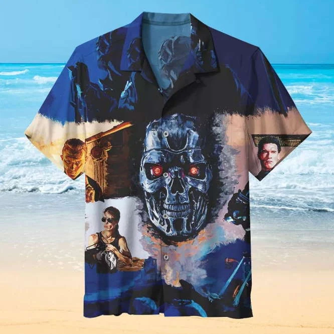 Series Film The Terminator 3D Print Hawaiian Shirt Short Sleeve Summer Beach
