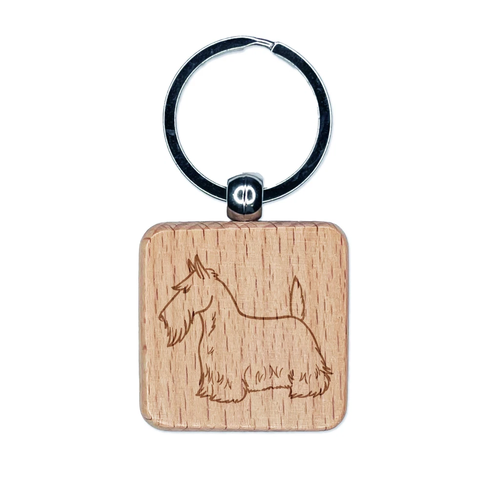 Serious Scottish Terrier Pet Dog Engraved Wood Square Keychain Tag Charm