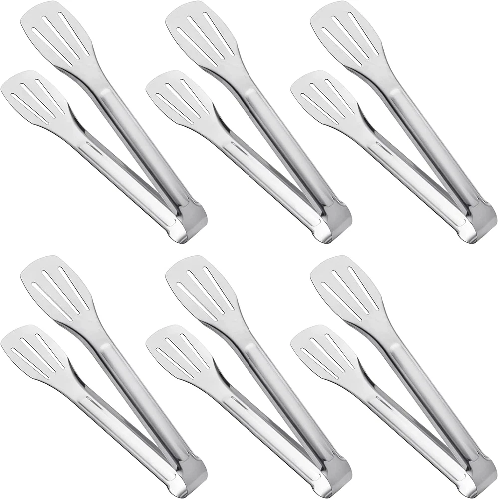 Recommended - Ideal for serving variety of foods. A Perfect Tool for parties, dinner, afternoon tea, buffet, catering, wedding celebrations or daily use for home, hotel and restaurant. PREMIUM QUALITY KITCHEN TONGS: Made of top Quality 1mm corrosion resistant Stainless Steel for unbeatable strength and premium construction. While remaining lightweight and easy to handle! Non-stick materials. Durable and safety, smooth edge will no scratch your hand. High Quality - Premium thickened stainless steel, mirror polished and both sides net holes design for effective grasping. Dishwasher Safe - Please clean the stainless steel tongs after using and store them in dry. PACKAGE CONTENT - 6 Piece 7-Inch serving tongs set Product Description PACKAGE CONTENT:6 × 7 Inch mini stainless steel tongs Great for serving appetizers, desserts, salads, burgers, hot dogs, toppings and more for any party, family dinners and any other event. A Perfect Tool for parties, dinner, afternoon tea, buffet, catering, wedding celebrations or daily use for home, hotel and restaurant. including serving and cooking foods such as salads,grilled foods, pasta, fruits,vegetables,meat and more. High Quality - Premium thickened stainless steel, mirror polished and both sides net holes design for effective grasping. Non-stick materials. Durable and safety, smooth edge will no scratch your hand. Mirror polished stainless steel mini tongs, sturdy and rust proof. Notice 1. Please wash the sugar tongs with warm soapy water before first using 2. Please clean and air dry the tweezers tongs after using for your healthy daily use, and store them in dry place for its durability
