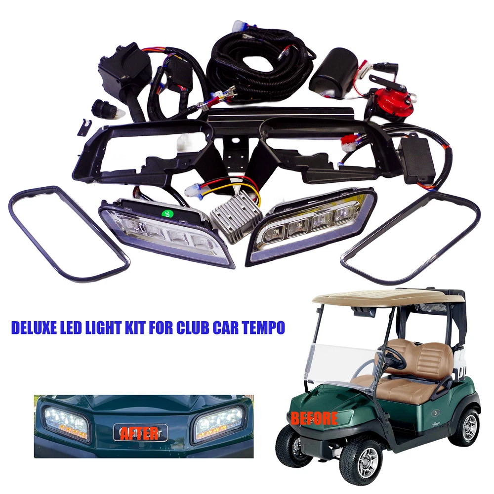 Deluxe LED Light Kit for Club Car Tempo 2018-UP Condition:New Voltage: 12V-48V Warranty:12 Months DESCRIPTION The Deluxe LED Light Kits for Club Car Tempo includes waterproof and shockproof lights that are designed to withstand any weather conditions and bumps on the road. It ensures your golf cart remains visible and safe, even in harsh environments. The energy-efficient LED lights included in the Club Car Tempo Deluxe Light Kit won't drain your battery as quickly as traditional bulbs. It is easy to install and provides all the lighting and signaling features you need to stay visible and safe on the road. It's an accessory for any Club Car Tempo owner looking to upgrade their golf cart with a complete lighting solution. Set 12-48V Deluxe LED Headlight & Taillight Kit for Club Car Tempo/Onward 18-UP 12-48V Deluxe LED Headlight & Taillight Kit for Club Car Tempo/Onward 2018-UP Gas&Electric Condition:New Voltage: 12V-48V Warranty:12 Months DESCRIPTION This Deluxe LED light Kits for club car Tempo/Onward gas&electric golf carts; it includes:LED Headlights with daytime light, tail lights, upgrade kits for turn signal light, hazard light, horn light,brake light,One piece DC converter and all needed hardware nuts and die line for headlights; The Deluxe LED Light Kits for Club Car Tempo includes waterproof and shockproof lights that are designed to withstand any weather conditions and bumps on the road. It ensures your golf cart remains visible and safe, even in harsh environments. It's easy to install and provides all the lighting and signaling features you need to stay visible and safe on the road. With the high beam/low beam function of car-style daytime running lights. Package included: The Light Kit includes LED Headlights, LED Tail Lights, Wiring Harness, Mounting Hardware, Voltage Reducer, Turn Signal Indicator, Hazard Switch, Control Module, Brake Switch, Horn, Column Cover, Dual USB Port (all parts as our first picture shown ) Note: Thank you for your purchase.Professional installation is highly recommended.The warranty is invalid if the damage is caused by personal improper operation. If there is any problem about the quality of the product de issues, such as not working, missing accessories, package damage and other issues that cause you need to return the parcel, please contact us in advance, we will immediately arrange for you to resend or refund.And you don't need to return defective packages. Thank you for your support! Payment Delivery details About us Contact us Payment You can use Paypal or a credit card with VISA or MasterCard logo Immediate payment is required upon selecting "Buy It Now" or upon checking out through the cart. Delivery details 1. We'll ONLY ship the item to your eBay Confirmed Address,so please confirm that your delivery address is correct before you place an order. We have no responsibility for shipping address provided wrongly and will not accommodate address change requests. 2.We try our best to ship your order after your payment ASAP. Order placed on weekends or holiday will be shipped on Monday or next working day. please expect 3-7 business days within US, 10-20 business days to Canada, up to 25 business days all around the world. 3.We will ship the item to you with free shipping.If you need to change the shipping method,please contact with us first before buying the item. About us We strive to satisfy every customer.we will do our best to solve your problem. We are (and always will be) committed to providing our customers with the best possible online shopping experience, exceptional quality products and extraordinary value. If we've fallen short in any way, or if there's anything we can do to assist or improve your shopping experience with us, we want to know! Contact us You can send message to us on Ebay.we will reply to you in 1-2 business days. We provide discounted price for any wholesale orders. Please contact us for the details.