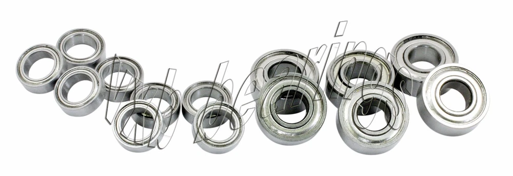 Complete Bearings Set Tamiya TG10 Set of 14 Bearings Complete set Ball Bearings for Tamiya TG10, Set Contains 14 Bearings. each bearing has 2 metal shields to protect the bearing from dust or any possible contamination, also bearings are pre-lubricated with grease. Item: Complete Bearings Set Model: Tamiya TG10 Closures: 2 Metal Shields Pack#187 Quantity: 14 Bearings Pack#187