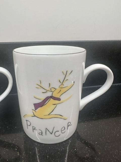 For your consideration is this great pair of 2 Pottery Barn Santa's Reindeer Christmas Holiday mugs. This set includes Dancer and Prancer. They are both in excellent condition with no chips, cracks, etc. Please e-mail us with any questions and we will respond promptly. We are long time eBay sellers with over 2,500 positive feedback and we have opened a new account to focus on holiday items. Thanks for your interest! (CH1)