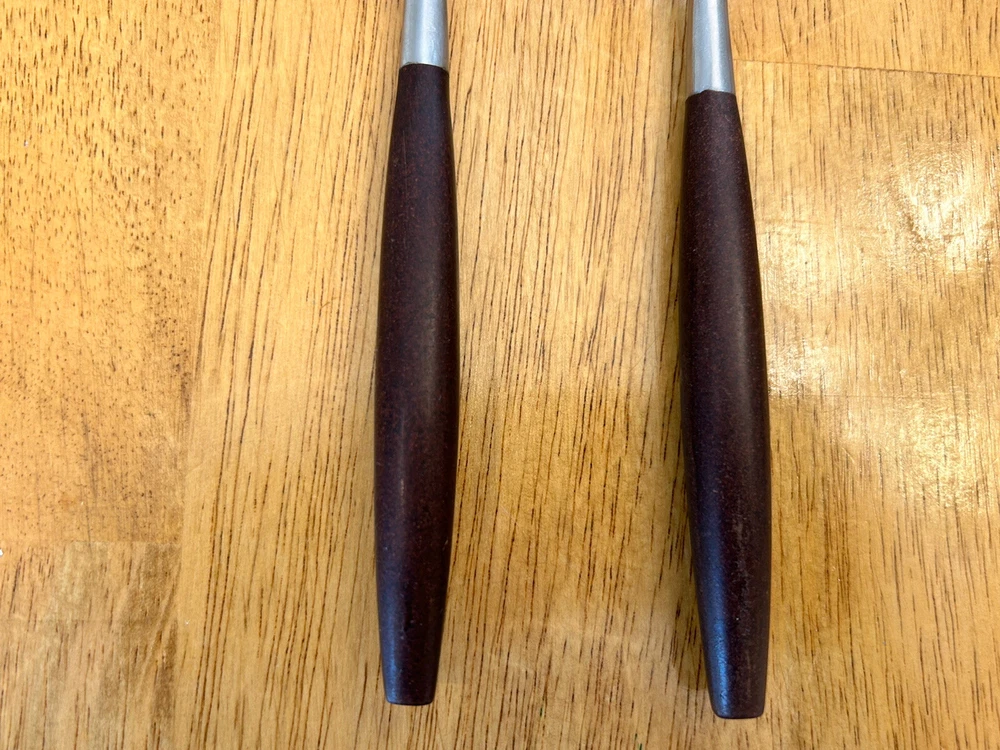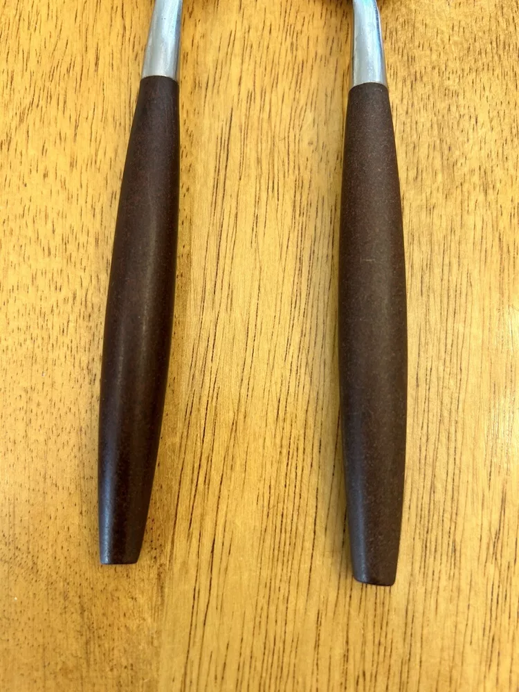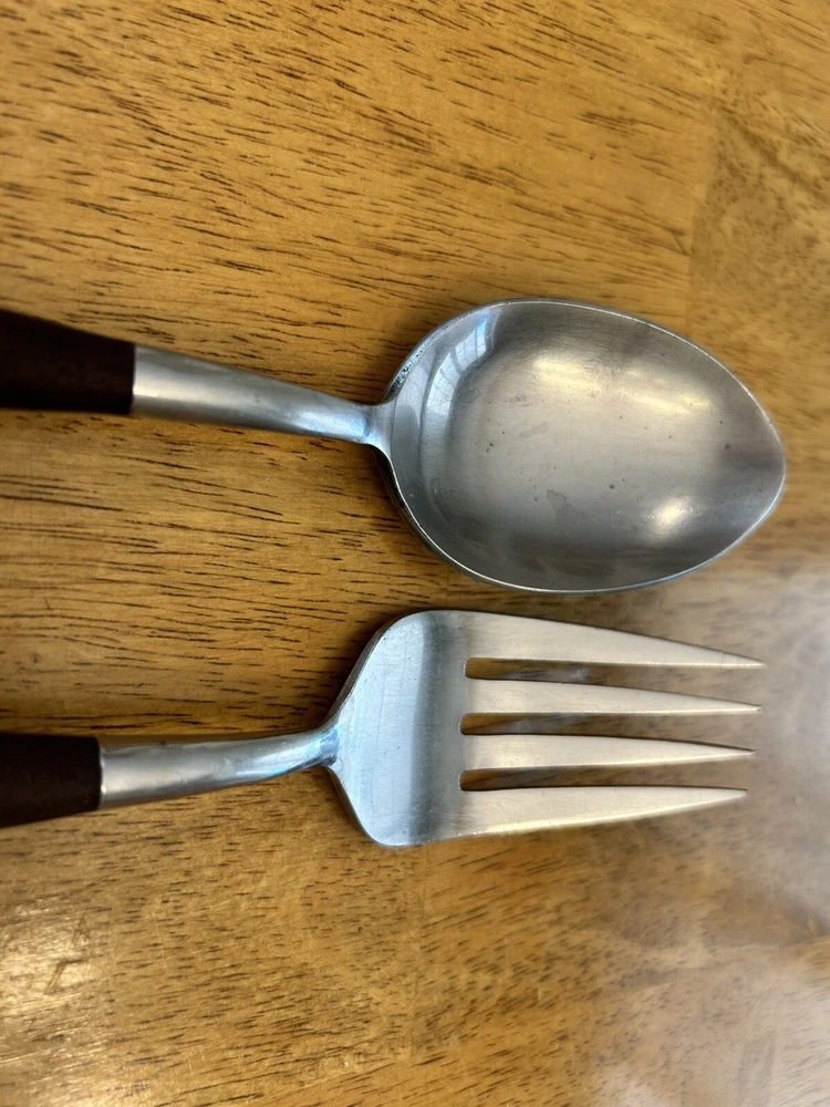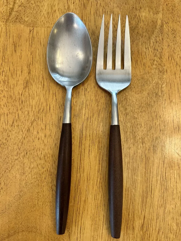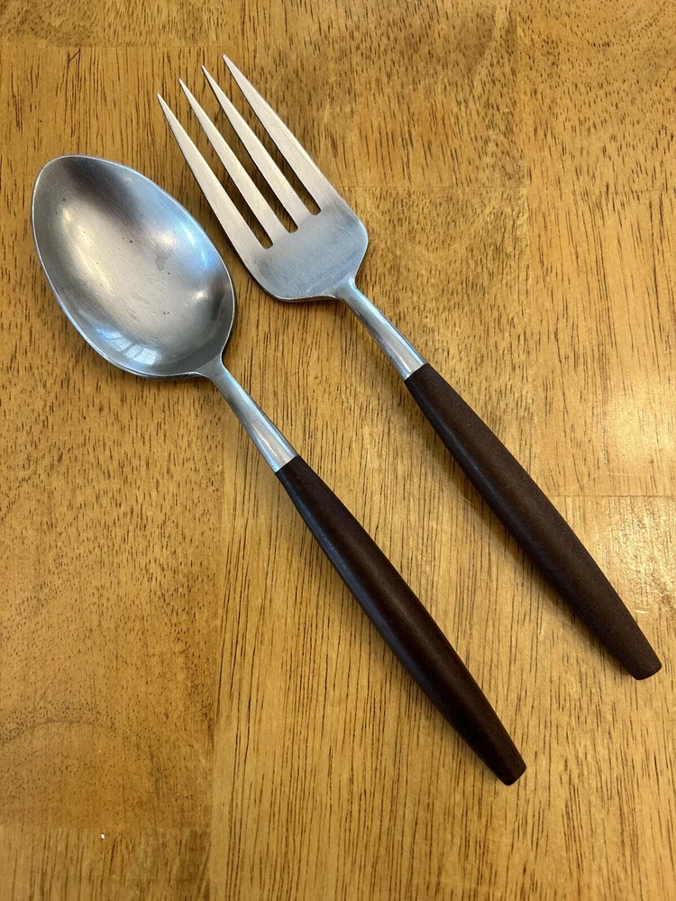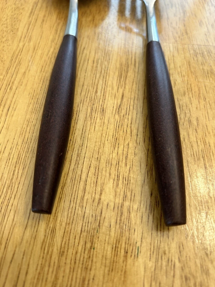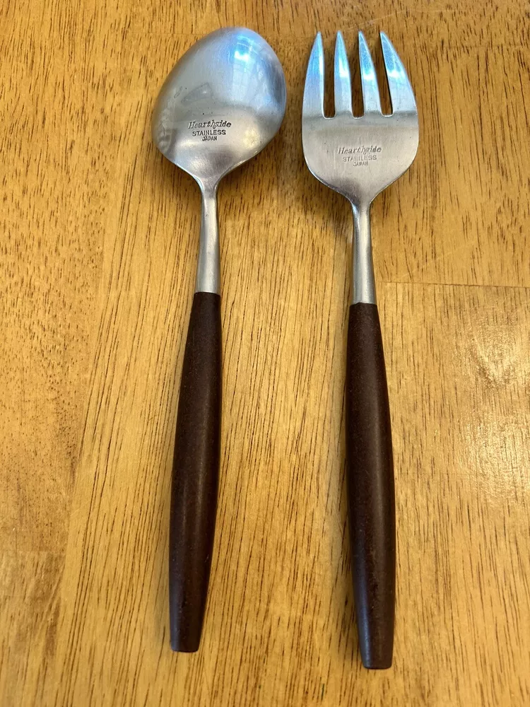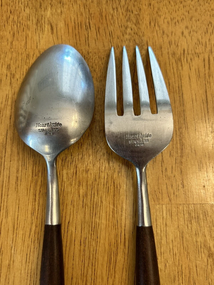 Set 2 Vintage Hearthside Serving Fork & Solid Spoon Stainless Made in Japan Brown Handle Vintage used condition- refer to pics Scratching scuffing from wear and use