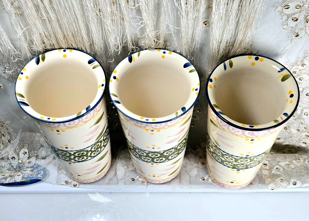 This set includes three 16 oz ceramic travel mugs from the brand TEMPTATIONS in a Floral pattern with a Multicolor design called Old World Confetti by Tara. The mugs are round in shape and feature a microwave and dishwasher-safe construction. Each mug is 7 inches in height and comes without lids. Perfect for enjoying your favorite beverages on the go, this set is a stylish addition to your kitchen or dining collection. J058