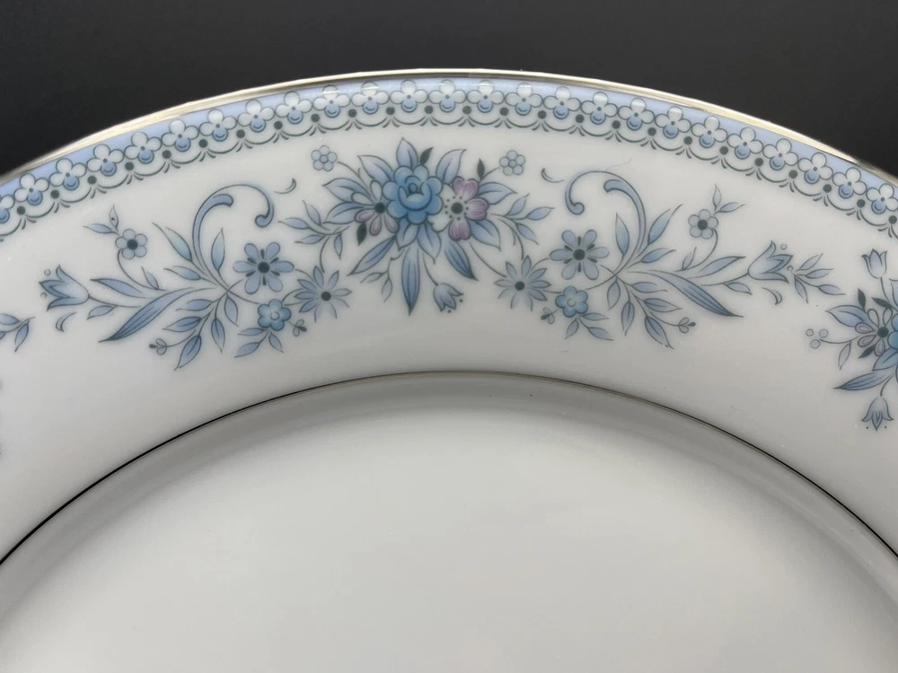 Original/Licensed Reproduction: Original Set Includes: Dinner Plate, Plate Color: Blue Occasion: All Occasions Type: Dinner Plate Plate Diameter: 10.5” Handmade: No Backstamp: Printed Theme: Flower Vintage: Yes Production Technique: Pottery Antique: No Shape: Round Country/Region of Manufacture: China Origin: Asia Product Line: Contemporary Fine China Number of Items in Set: Four-Piece Style: Contemporary Pattern: Floral Material: Porcelain Brand: Noritake 607316689733399: used_good