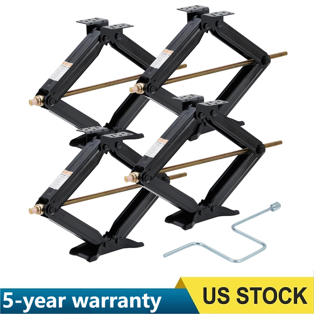 Heavy-Duty Stabilization: Each RV stabilizer jack supports up to 7500 lb, providing secure leveling for RVs, trailers, and campers; these scissor jacks for RV retract to 4" and extend up to 24" for reliable support on any trip Dual Installation Options: Enjoy dual installation options with these camper jacks—use the traditional crank handle for precise RV leveling or switch to the included drill sockets for quick and effortless lift, catering to any camper's needs Compact and Portable: Lightweight and easy to store, these camper jacks fit neatly in your vehicle; the portable design ensures you always have dependable RV leveling jacks without losing valuable storage space Durable Construction: Made from high-grade steel with a protective powder coat, these camper stabilizer jacks are Set 4 RV Scissor Jacks 7500 lbs 4"- 24" Camper Trailer Stabilizer Leveling Jacks Heavy Duty RV Scissor Jack Max 7500LBS Load Capacity,Keep Stabilizing/Leveling Camper Trailer Features: Heavy-Duty Stabilization: Each RV stabilizer jack supports up to 7500 lb, providing secure leveling for RVs, trailers, and campers; these scissor jacks for RV retract to 4" and extend up to 24" for reliable support on any trip Dual Installation Options: Enjoy dual installation options with these camper jacks—use the traditional crank handle for precise RV leveling or switch to the included drill sockets for quick and effortless lift, catering to any camper's needs Compact and Portable: Lightweight and easy to store, these camper jacks fit neatly in your vehicle; the portable design ensures you always have dependable RV leveling jacks without losing valuable storage space Durable Construction: Made from high-grade steel with a protective powder coat, these camper stabilizer jacks are engineered to withstand rust and wear, ensuring long-lasting service and stable support with every use Versatile Application: Ideal for leveling and stabilizing campers, trailers, and RVs, these trailer scissor stabilizer jacks are great for minor repairs and necessary for any RV step stabilizer or outdoor adventure kit Package List: 4 x RV Scissor Jacks Payment Delivery details Terms of sales About us Contact us Payment We accept payment either via PayPal or any of the following credit cards; Visa, MasterCard, Discover, and American Express. Delivery details 1. We will delivery out at the handing time when we receive the payment. 2. The delivery time is 3-5 business days to US by usually time.The parcel maybe delay 1-2day of the weekend.Due to the bad weather,Holidays,Hot Season ect.the parcel maybe delay,If you have any problems,mssage us,we will try our best to solve it. 3. We ship to your eBay address. Please make sure your eBay address is correct before you pay. 4. If you want to change the shipping address,message us before our send out. Terms of sales If you are not satisfied with the item for any reason, please do not quick to leave negative/neutral feedback even open request and case without any communication with us. We devote ourselves making EVERY CUSTOMER in 100% Satisfactory and resolve any problem. Thank you for your understanding and recognition,we are always leave positive feedback to all our customers. About Reply: All replies will be sent to your email box, if you do not get response within 24 hours (Sat. & Sun. excluded) please check your eBay My Messages in case that our emails will be filtered automatically by your settings. About us skybridge99 is a brand new store but we are one of North America’s top online suppliers of specialized, high-quality aftermarket online retailers and suppliers, committed to developing new markets. We primarily offers tool sets, auto parts, home goods, etc..With over 20 years of product selection and manufacturing experience, we delivers unparalleled quality, value, service and satisfaction. Our highly-trained, professional staff offer in-depth knowledge and personalized assistance for customers worldwide. Providing our customers with a simple, hassle-free experience with best-in-class customer service is more than a goal. Contact us Any problem please rest assure to contact us by eBay message first. We will reply you as soon as we can. We will deal with it within 24hs on working days. Brand GARVEE Manufacturer Part Number RV Stabilizer Jacks Part Type RV Scissor Jacks Country/Region of Manufacture China MPN Does not apply Load Capacity 7500 Lbs Automotive Fit Type Universal Fit Item Weight 14.67 Pounds Vehicle Service Type Trailer RV Unit Quantity 4 Warranty 5 Year