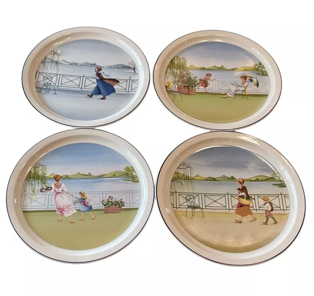 This is a set of four Villeroy & Boch decorative plates with a romantic 4 seasons theme. Each round plate measures 9 inches in diameter and features a multicolor floral design. The plates are vintage from the late 20th century and are part of a limited edition collection. They are made of porcelain, have a glossy finish, and are ideal for all occasions. Each plate is adorned with a different design representing each season. Smoke free home Please visit my store at https://www.ebay.com/str/theuniqueredhead . Thank you for your consideration. Please message me if you have any questions. I do combined shipping on my items in the store.