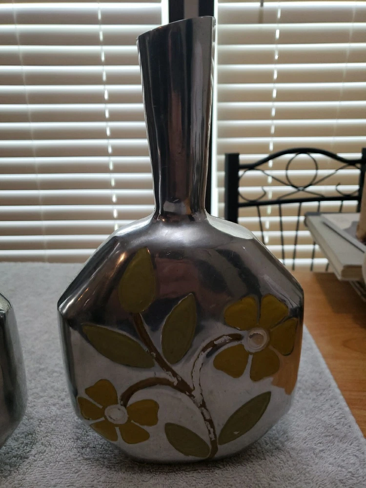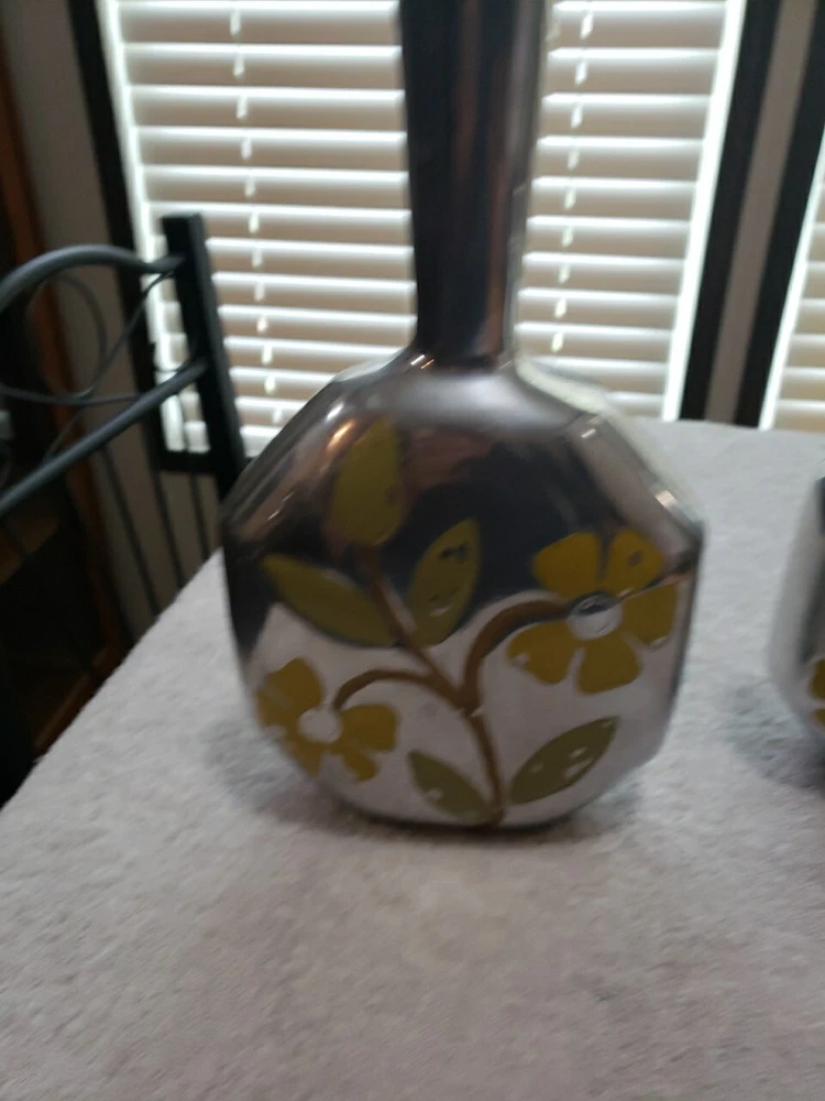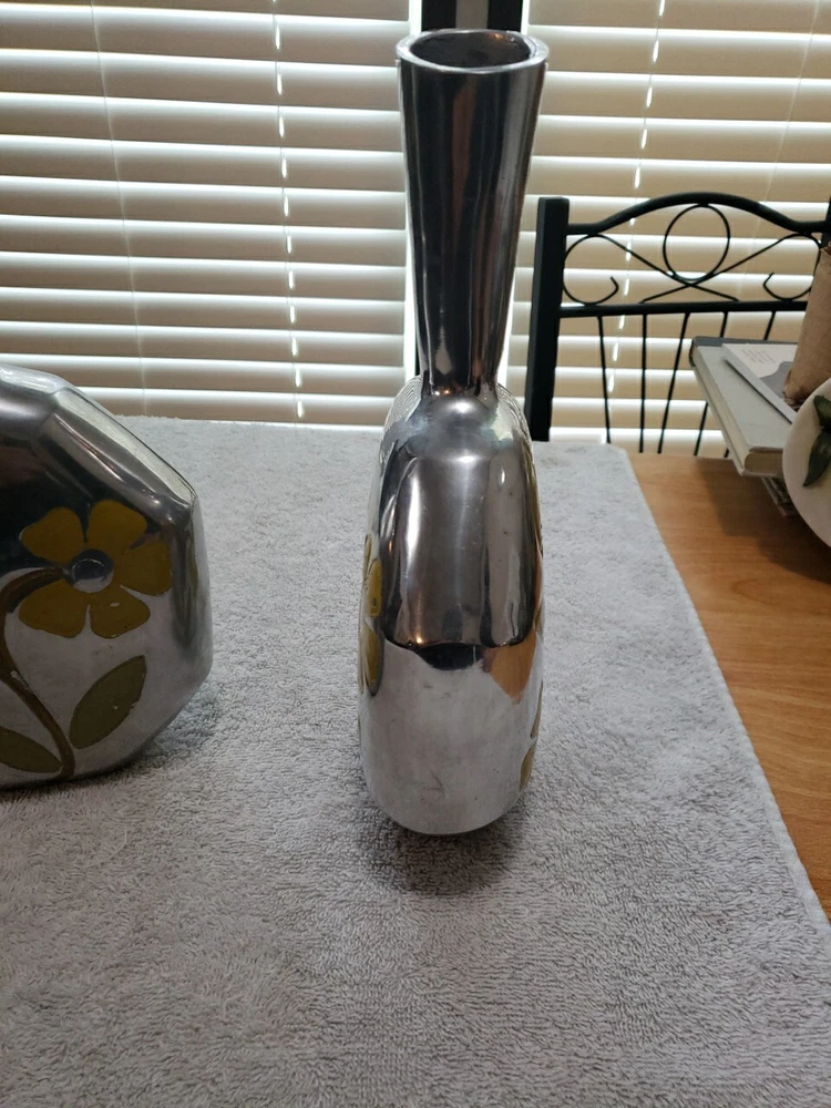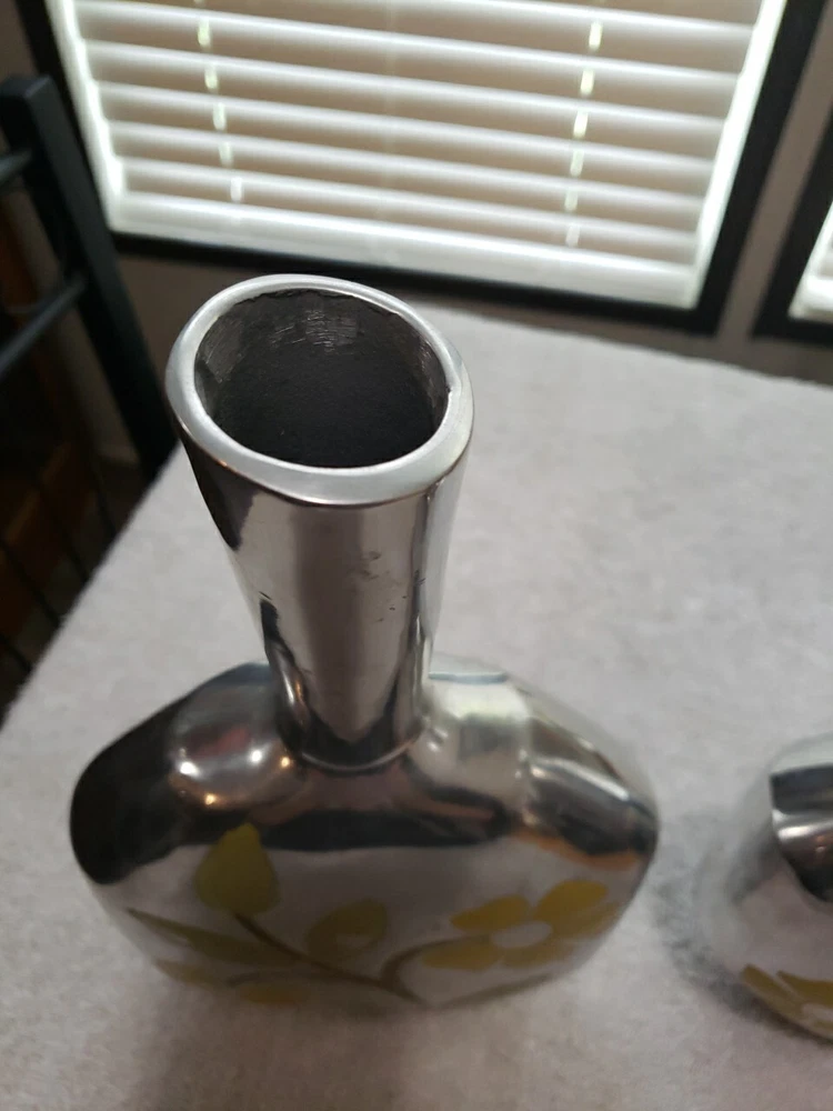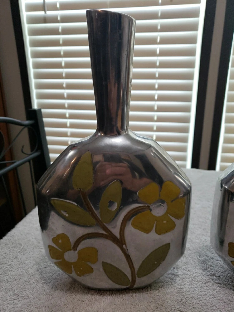 Type: Vase Set Country/Region of Manufacture: India Pattern: Floral Item Length: 11.5 in Brand: Unbranded Material: Aluminum