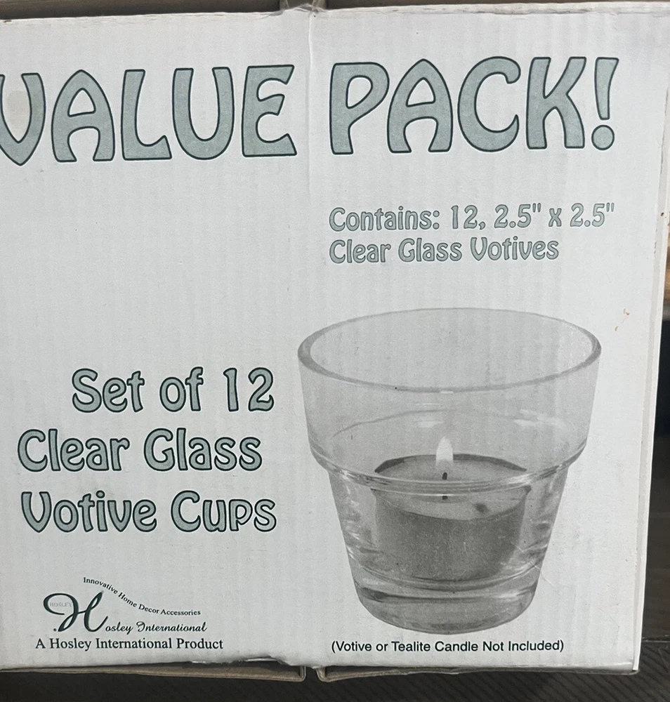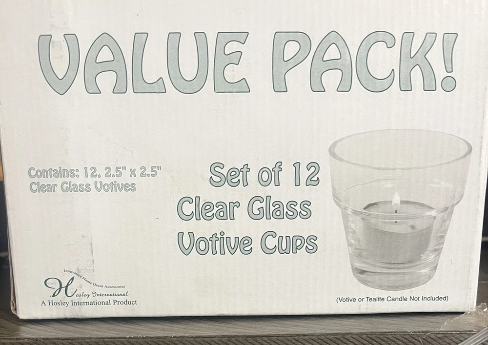 Add a touch of contemporary elegance to your home decor with this set of 12 glass candle holders from Hosley International Co. These round-shaped, tealite votive-style candle holders are perfect for all occasions and can hold mini candles, votive candles, or cups. Each candle holder measures 2.5 inches in length and width, and 2-1/2 inches in height, and weighs 3 lbs. The clear glass finish of these candle holders beautifully complements any room in your home. They are easy to clean with warm water and come in a boxed packaging. Whether you're planning a romantic dinner or a relaxing bath, these glass candle holders will create a cozy and inviting atmosphere.